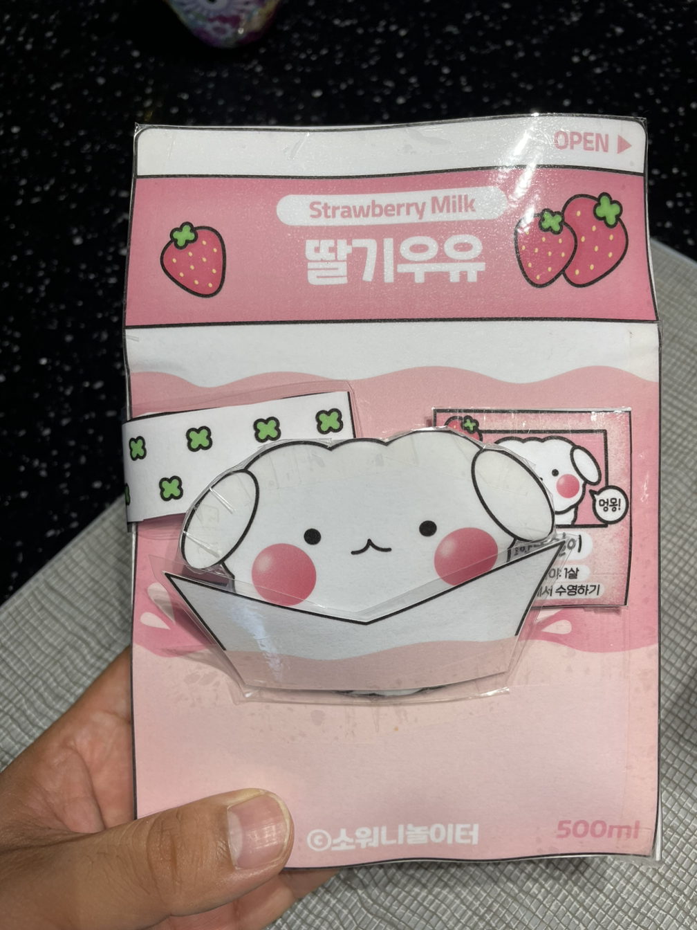 하지만 딱히 이공계가 아니더라도 소워니 놀이터 유튜브 영상을 몇 번만 반복해서 보면 쉽게 만들 수 있게 영상을 올려놓았기 때문에 공작에 대한 재능이 없어도 무방하다. 워터파크를 만들고 나니 지난주 아이의 메모가 떠올라 딸기우유 스퀴시를 추가로 만들었다. 워터파크를 만들고 나니 이 정도 수준은 금방 만들 수 있을 거라는 자신감이 생겼다. 하지만 자신감과는 달리 배경의 처음과 마지막을 거꾸로 붙여서 처음부터 다시 만들어야 했지만 옆에서 제작 과정을 지켜본 아이는 쿨하게 그냥 사용하기로 했다.