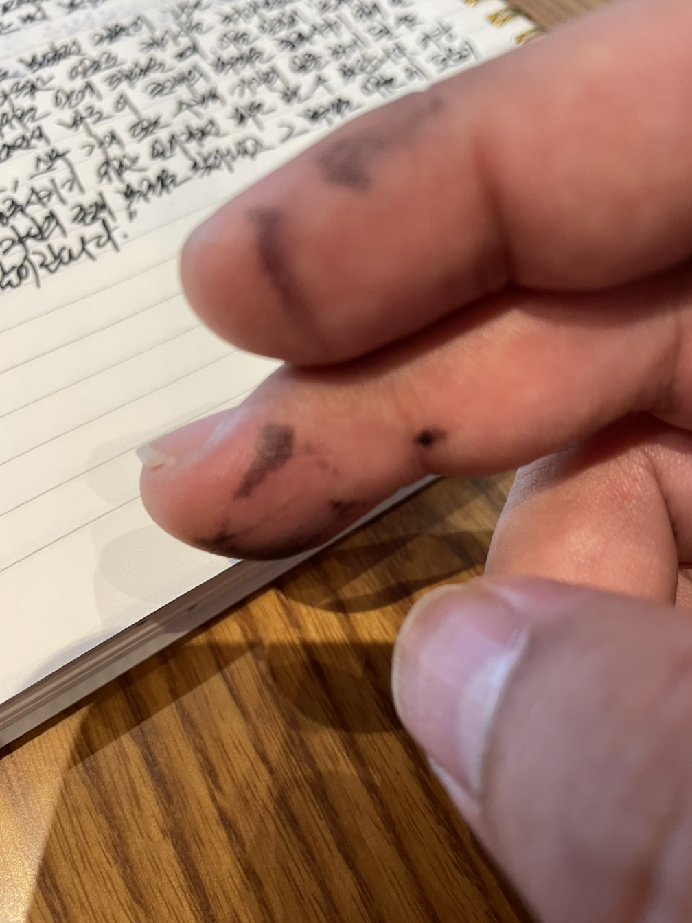 특히 고요함 속에 들려오는 사각사각 소리를 내며 들려오는 만년필로 필사하는 소리는 나의 정신을 깨우는 소리와 같다. 만년필을 사용하다 보면 어쩔 수 없이 잉크가 손에 잘 묻는데 이런 손이 처음에는 부끄럽기도 했지만 지금은 새벽에 필사를 했다는 표식으로 느껴진다. 손이 깨끗한 날은 필사를 하지 않았거나, 만년필을 사용하지 않고 볼펜을 사용했다는 것으로 분간하기도 한다.
