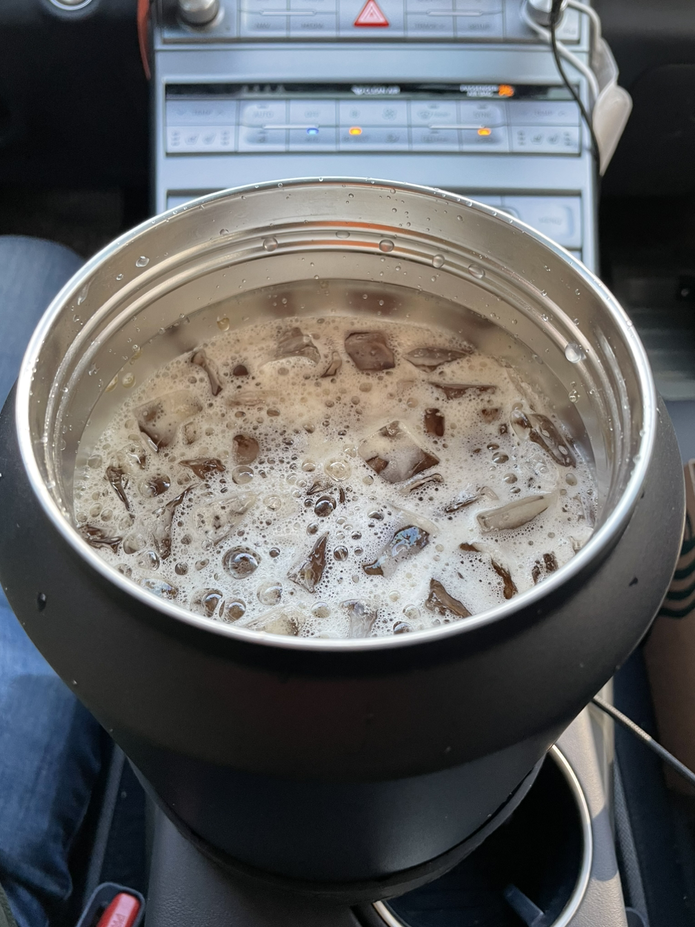 주문한 음료를 수령하고 준비한 텀블러에 담으니 마음속에 넘쳐나는 뿌듯함이 있었지만, 아내는 놀란 토끼눈을 하고 보고 있었다. 설마 이 텀블러를 가지고 들어갔냐며 재차 물어보면서 다시는 그러지 말라고 당부하였다. 솔직히 나도 이 텀블러를 들고 매장에 들어갔다면 직원분도 아내와 같은 토끼눈을 하셨을 것이다.