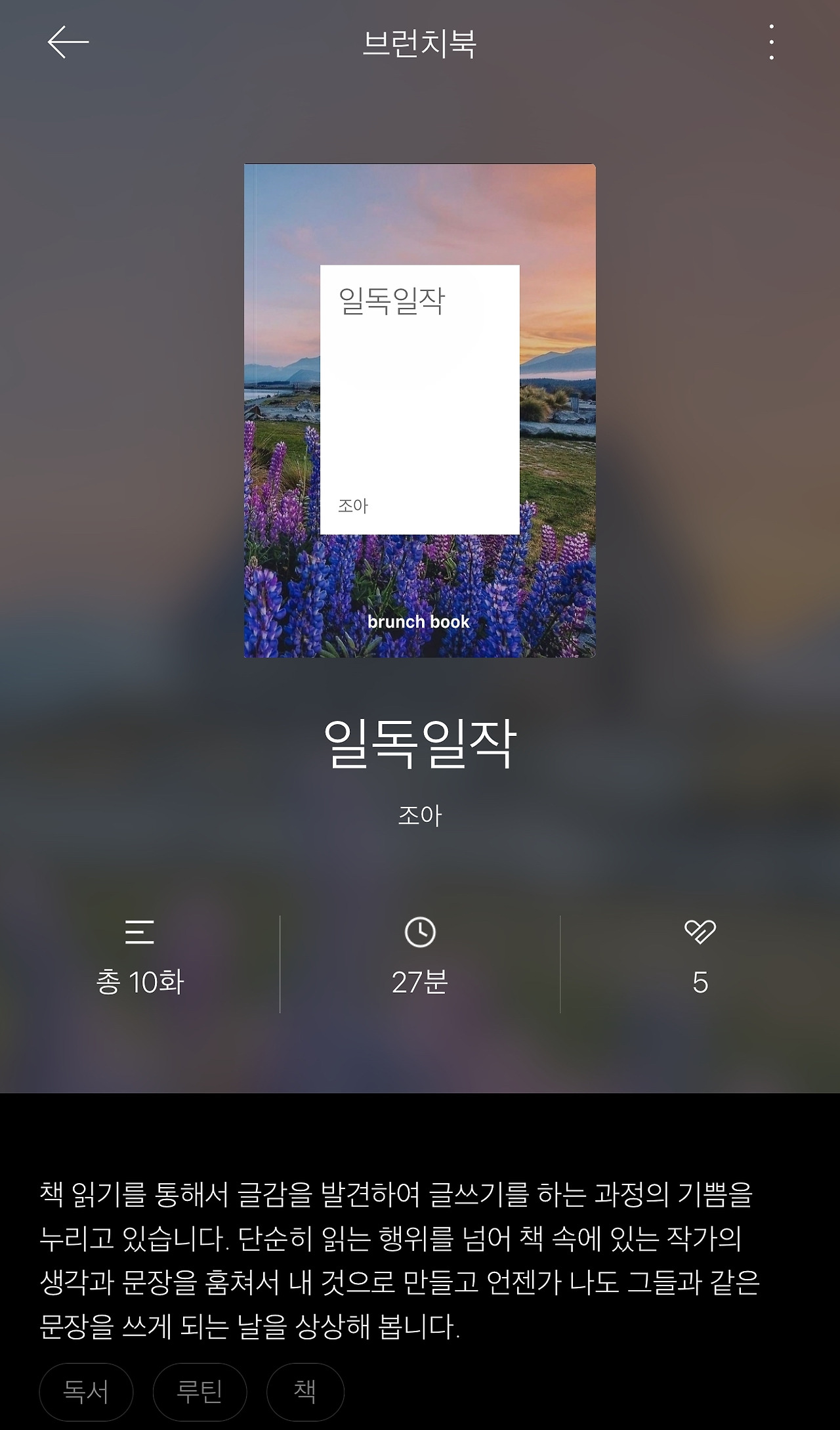 매일의 글쓰기를 실천하며 올해 400개가 넘는 콘텐츠를 생산해 내었고, 도서 분야 크리에이터에 선정되어 주로 책과 관련된 글감으로 글쓰기 콘텐츠를 만들고 있으며 내년까지 1,000개의 콘텐츠를 만드는 것이 목표이다.