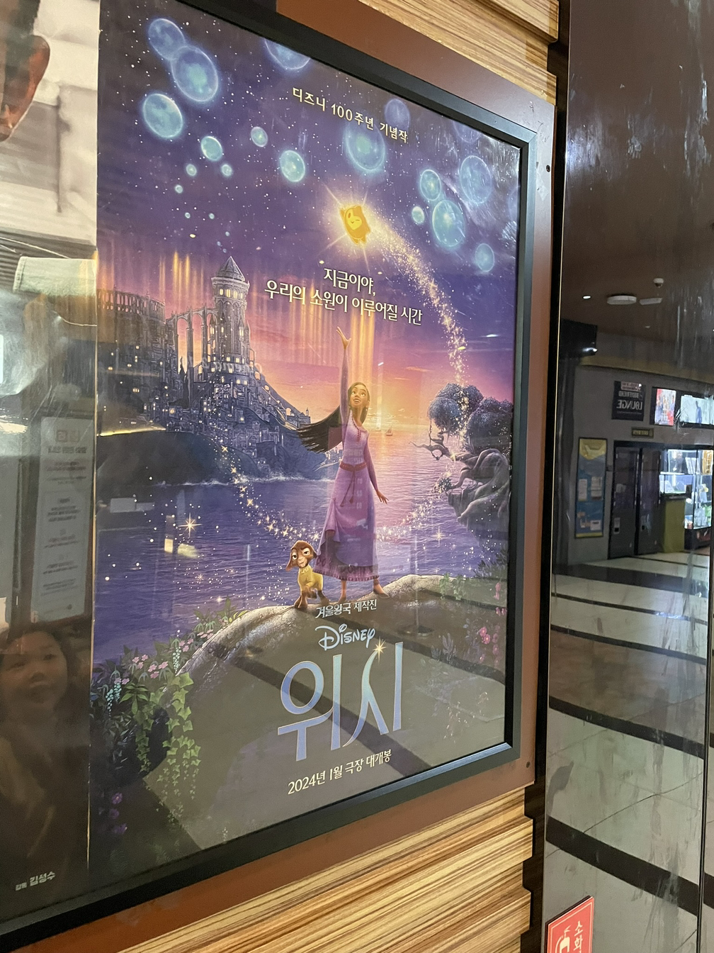 아이가 <위시>의 상영일을 나보다 먼저 안 것처럼 나도 아이 나이 때 수단과 방법을 가리지 않고 내가 좋아하는 디즈니 영화 상영일을 찾아봤던 기억이 났다. 내가 디즈니 영화와 캐릭터를 다 알고 있는 것을 신기하게 생각했던 아이는 이제야 비밀이 풀렸다면서 상영 시간을 기다리면서 한참을 이야기를 나눴다. 이번에는 어떤 캐릭터가 나올지 기대하며 상영관으로 들어갔다.