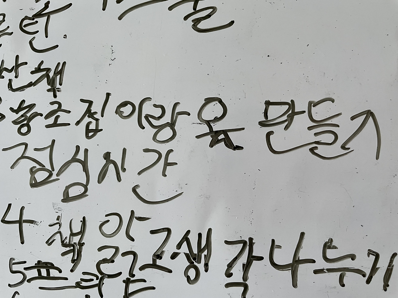 서로 먼저 그림을 그리고, 글을 쓰기 위해 좌충우돌하며 아무것도 없었던 백지를 채워나갔다. 나는 아이의 그림을 그리는데 당시 자세한 상황을 설명해 주었고, 그림을 먼저 그린 아이는 내 옆에서 글쓰기를 마칠 때까지 말없이 가만히 지켜보았다. 눈치를 보니 내가 쓰는 것을 바로 읽고 싶었으나, 내 필체가 읽기 어려워 따라 읽지 못한 것 같았다.