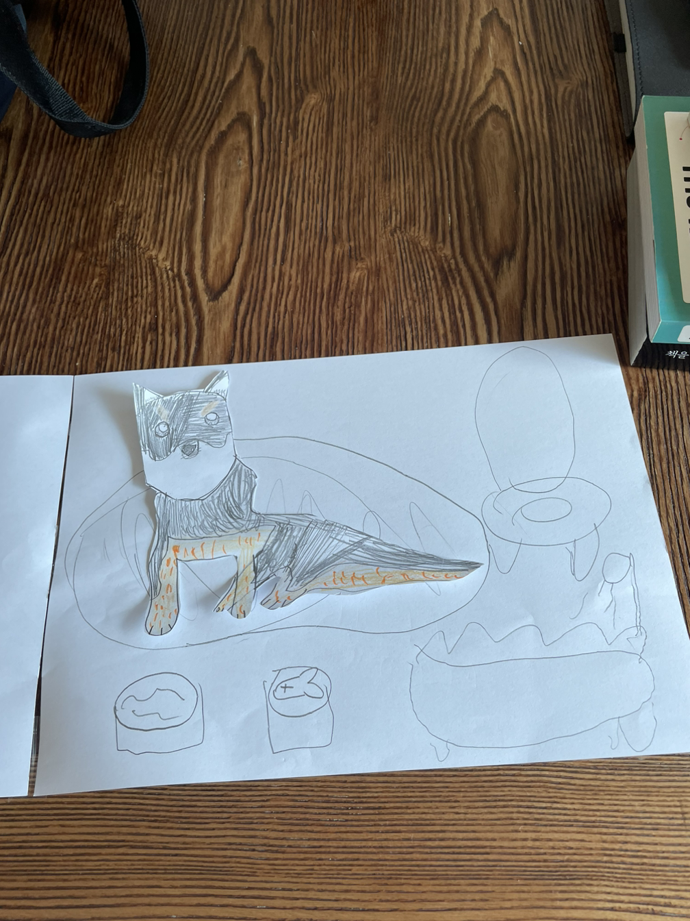 샤워 전 쓴 글을 퇴고하고 브런치와 블로그에 올리니 아이가 그 사이에 흑구를 만들어서 가지고 왔다. 오늘 새벽 꾼 꿈 내용을 그 누구에게도 말하지 않았는데 아이는 꿈속에서 아직 찾지 못한 강아지 대신 ‘반석’이란 이름의 진도를 선물해 주었다. ‘반석’이란 이름은 예전부터 내가 개를 키우게 되면 지어주고 싶었던 이름이다.