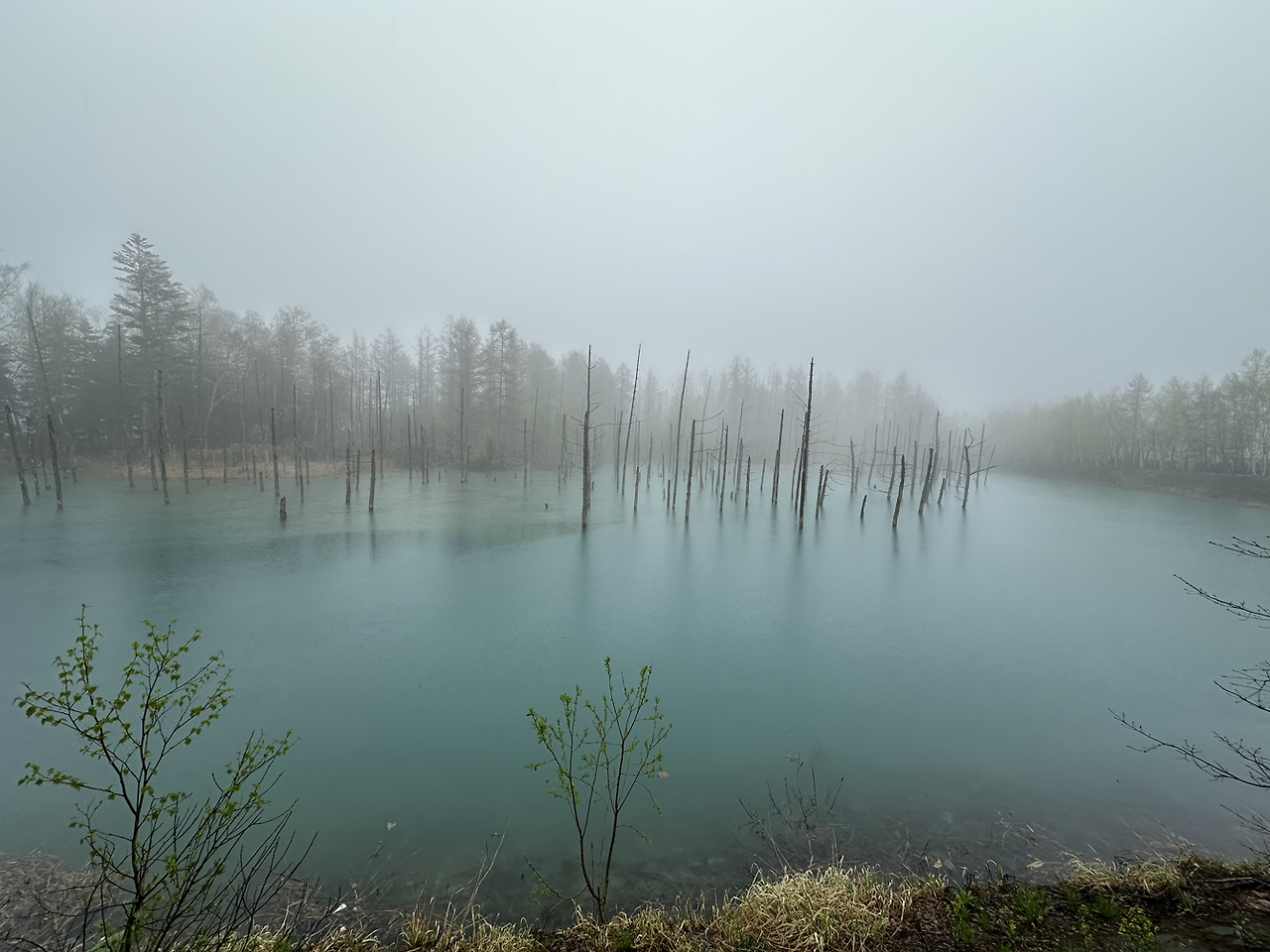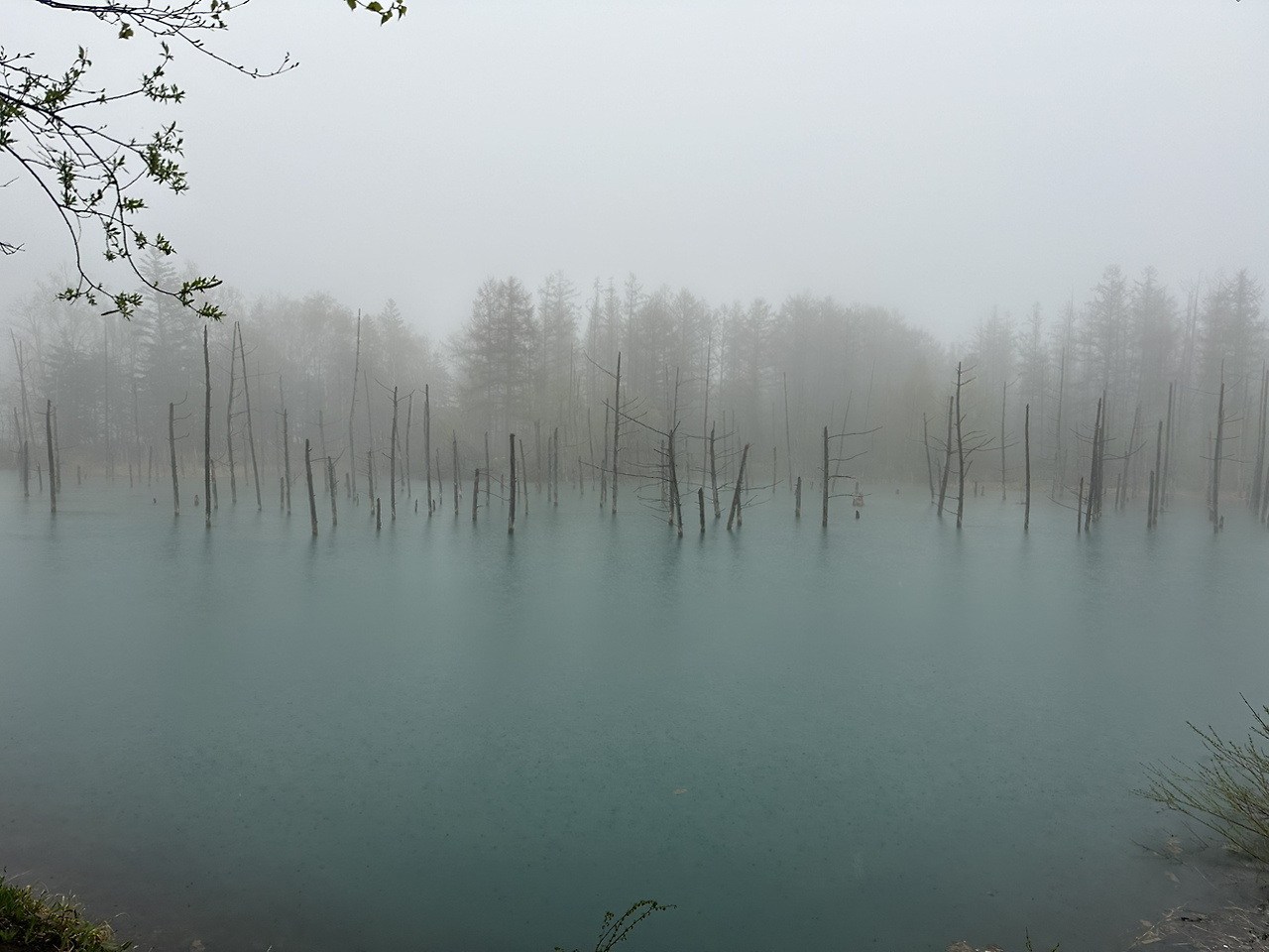 여행 중 내리는 비는 야속하다는 생각이 들 수 있지만 이번 여행 중 내리는 비는 참 순수하고 깨끗하다는 느낌이 끊이지 않았다. 우산도 쓰지 않고 다닌다는 아내의 타박에도 내리는 비를 맞으며, 때론 한 두 방울 마시기도 하면서 홋카이도 자연이 주는 선물을 최대한 누리려고 했다. 비에이 시내에 들러 오후 3시까지밖에 영업하는 ‘스즈란’이란 식당에 들어 일본 가정식 요리를 먹으며 장거리 이동의 허기를 달랬고, 매번 눈 덮인 청의 호수가 아닌 푸른빛이 가득한 모습을 보기 위해 이동했다.