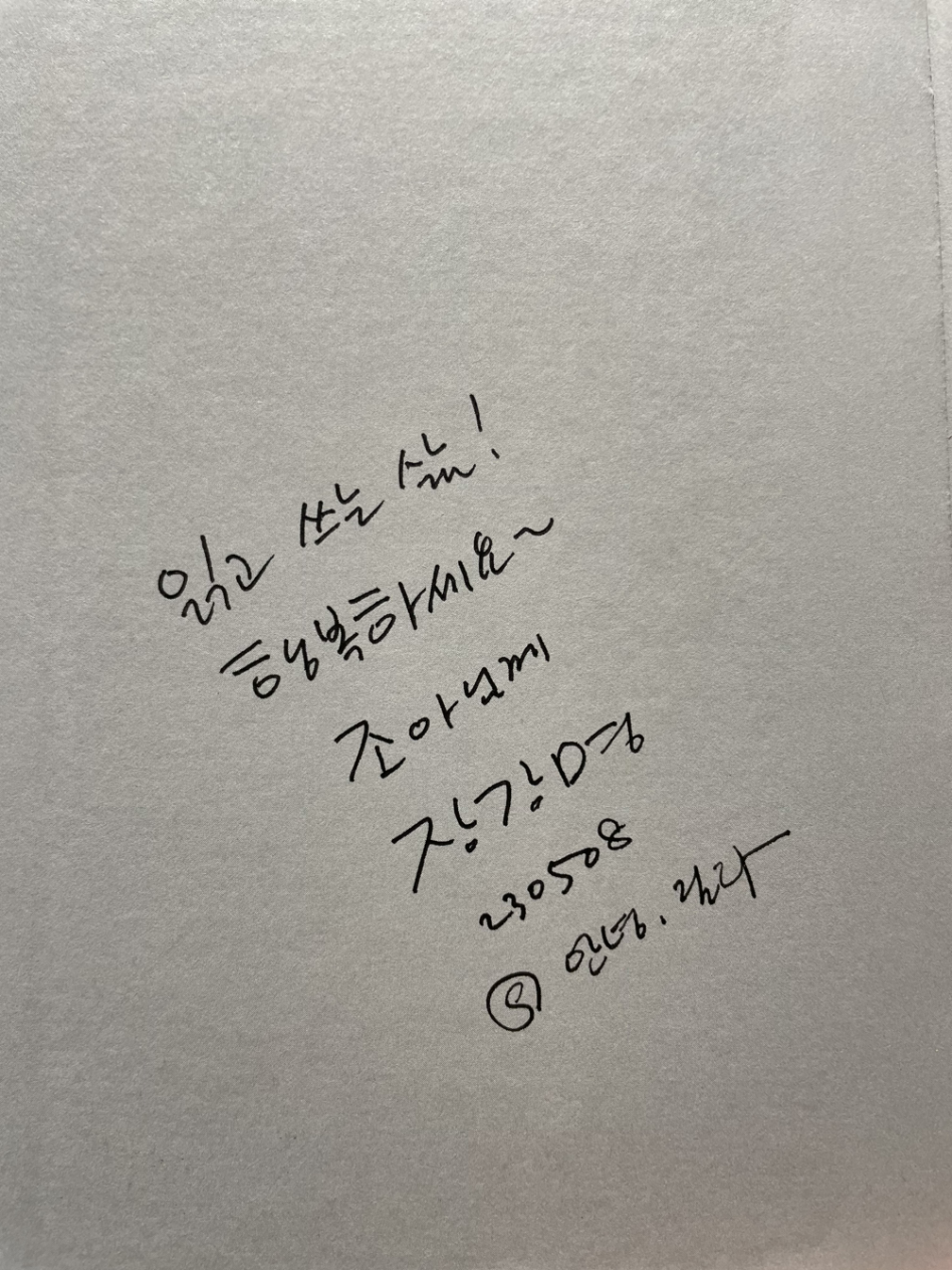 안녕릴라에서 잠시 뵈었던 장강명 작가님은 그냥 동네 형 같은 친숙하고 자연스러운 모습이었으며, 초면에 작가 친필 사인을 요구하는 나에게도 친절하게 해 주셨다. 작가님의 모토인 ‘읽고 쓰는 삶’을 실천하는 분에게 받는 서명은 나에게 또 다른 울림이 되고 있다. 나도 이 분처럼 읽고 쓰면서 나만의 울림을 만들어야겠다는 다짐을 하면서 이 울림이 다른 사람들에게 도움이 되고, 세상을 더욱 풍요롭게 만들어야겠다는 도전을 하게 만든다.