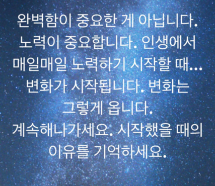 아무리 능력이 출중하다 하더라도 처음부터 잘하는 사람은 없다. 시도하고 실패하며, 다시 시도하고 또 실패하며, 한 번 더 시도하려는 노력을 한다면 결국 무엇인가를 이룰 수 있다고 믿는다. 그래서 나의 긍정 마인드 세트를 노력으로 정했다. 실패했을 때 낙담하지 않고, 한 번만 더 시도하려는 긍정의 마인드를 통해 노력을 더 한다면 안 되는 일은 없을 것이라 생각한다. 다만 실패를 두려워하여 시도조차 하지 않고, 결과를 부정적으로 예측하는 자세가 오히려 더 문제이다.