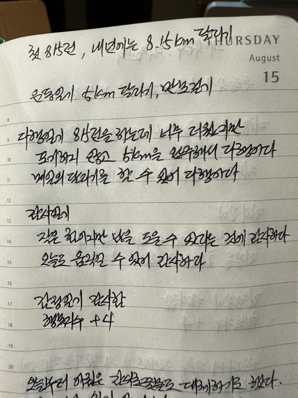 디지털 형식의 기록도 매력이 있지만, 나는 아직도 종이 위에 기록하는 것을 제일 좋아한다. 특히 감정코칭 전문가 2급 과정을 배우면서 매일 감사 일기를 쓰고 있는데, 그중 다행 일기는 그날에 있었던 일 중 정말 다행이라고 생각되는 것 두 가지를 적는데 요즘은 달리기에 대한 이야기가 대부분이다.