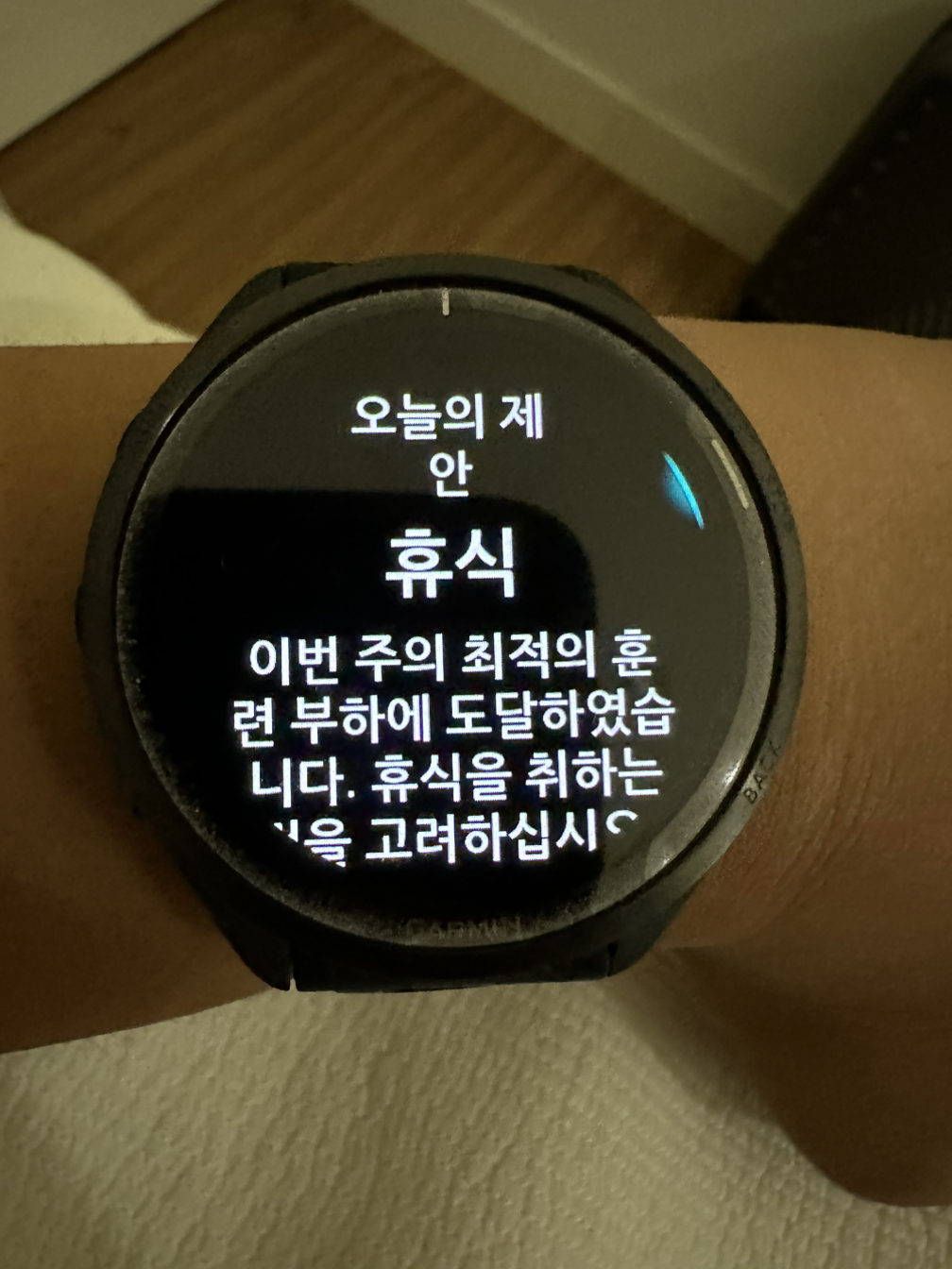 가민 포러너의 세 번째 제안을 수락하고 제안하는 대로 오늘은 최대한 휴식을 취할 것이다. 내일 새벽에 일어나 가민의 제안을 확인하고 더 휴식을 해야 한다고 제안한다면 더 휴식하는 방법을 받아들이는 것도 나쁘지 않을 것이다.