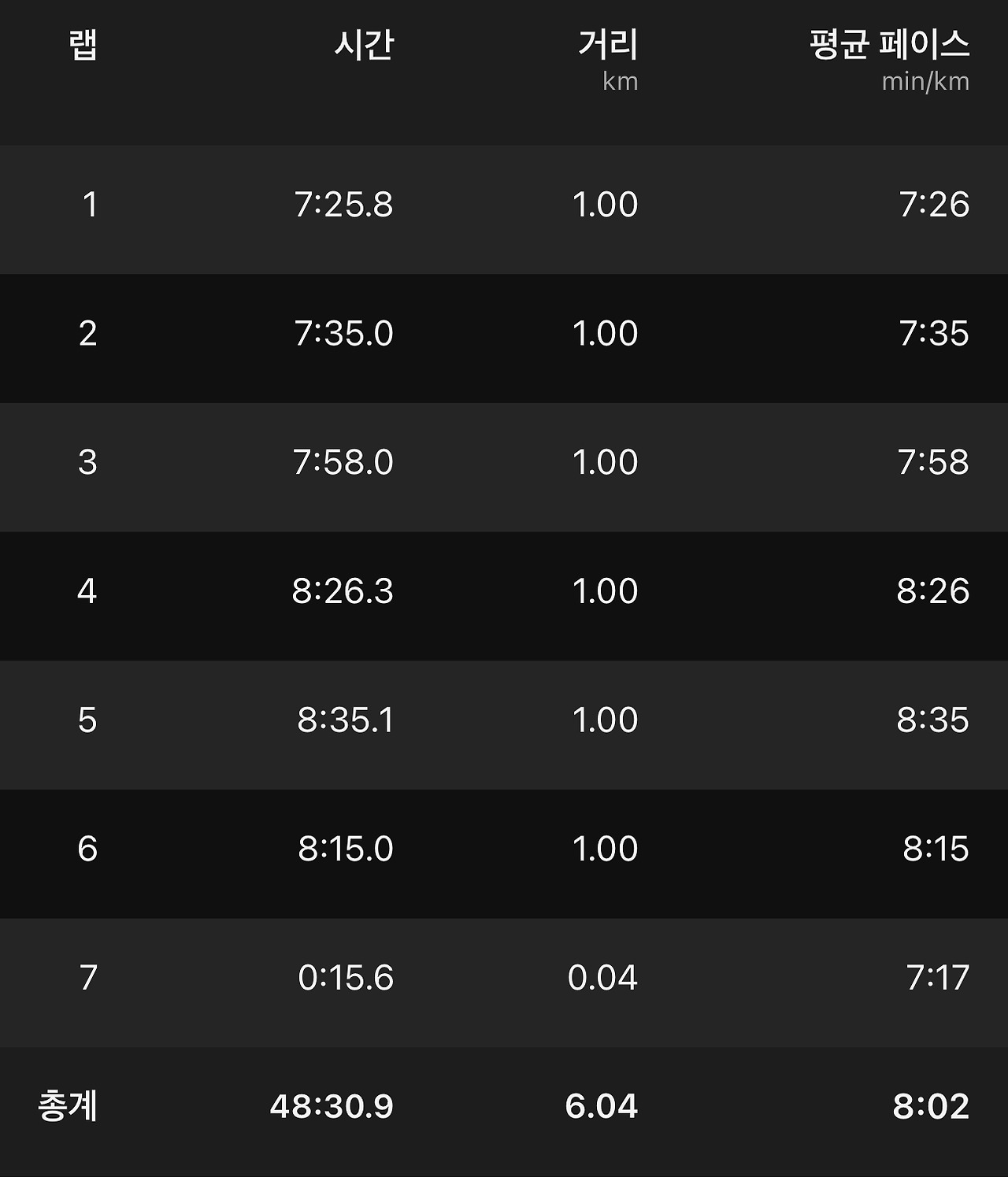 워낙 기분이 좋지 않았기에 달려도 풀어지지 않을 수도 있다고 생각했지만, 쉽게 풀리지는 않았고 어쩔 수 없다고 생각해서 더 이상 기분에 연연하지 않기로 했다. 대신 달리기에 집중하며 꼭 6km를 완주한다고 마음속으로 되새기며 달렸다.