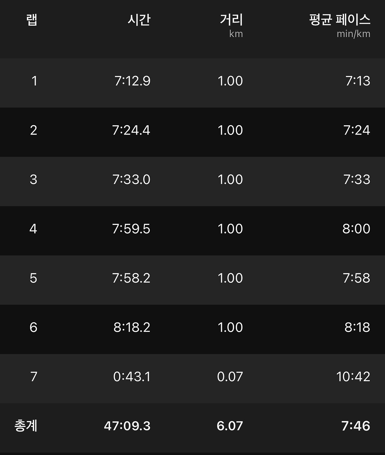 의도하지는 않았지만 6km 달리기를 3일 동안 한다면 충분히 6km 달리기를 할 수 있다는 생각이 들어, 아무리 힘들어도 꼭 6km를 달려야만 했다. 굳은 마음을 먹고 거부 반응을 보일 몸에 오늘 6km를 달릴 거라고 미리 말해주었다.