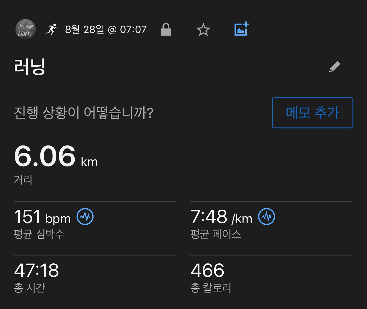 매번 내 글을 읽고 응원해 주시는 작가님의 답글을 보면서 올해 7월부터 달리기를 시작한 지 벌써 8주가 된다는 것을 알았다. 두 달이라는 시간 동안 본격적으로 달리기를 한 것은 최근 4주이지만 7월부터 나는 끊임없이 달리기를 하기 위해 여러 가지 시도를 했고, 실패하며 새로운 방법으로 시도하다가 8월 2일부터 본격적으로 달리기를 하고 있다.