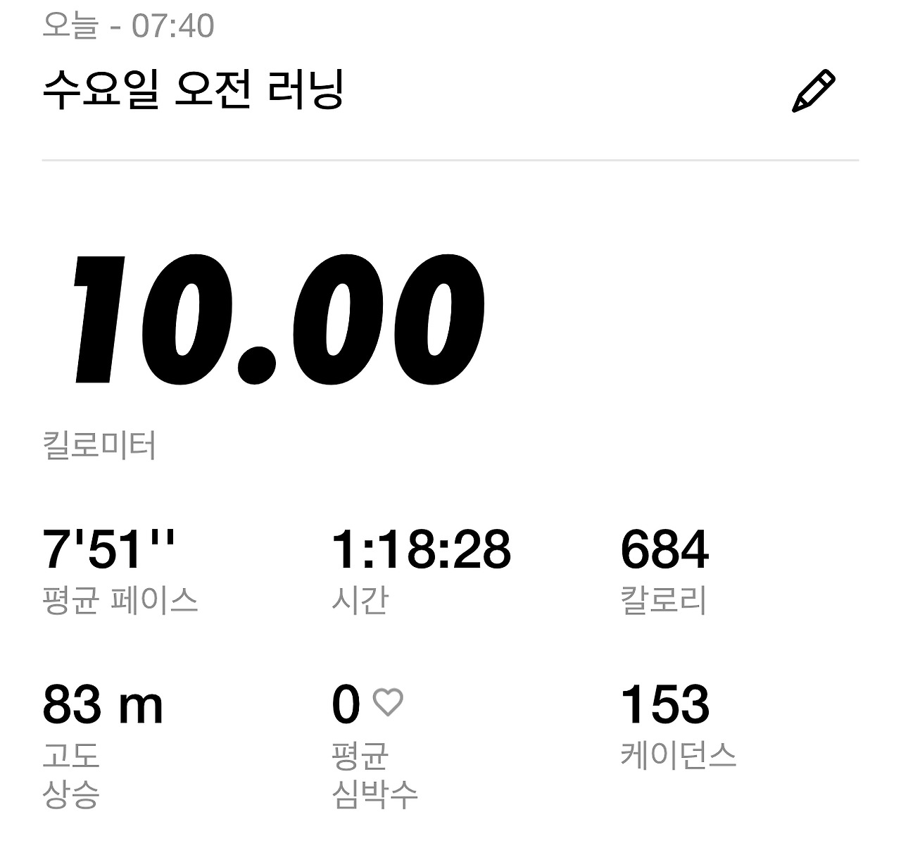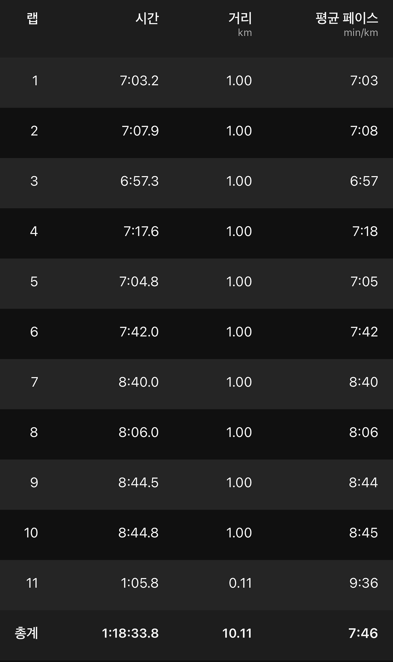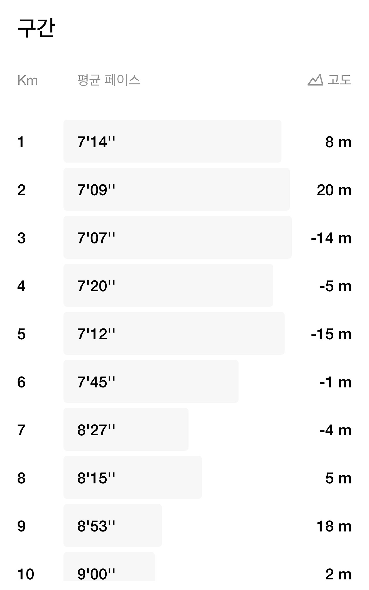 특히 전날 걷기 운동만 했기에 달리기를 하려고 하는 내 의도에 나태함을 보일 수도 있어서 조금 걱정했지만, 큰 문제없이 달리기를 끝낼 수 있었다. 하지만 여전히 5~6km 구간에서 느끼는 피로감으로 페이스가 급격하게 떨어지는 문제는 여전히 해결해야 할 문제라는 것을 다시금 느낄 수 있었다.