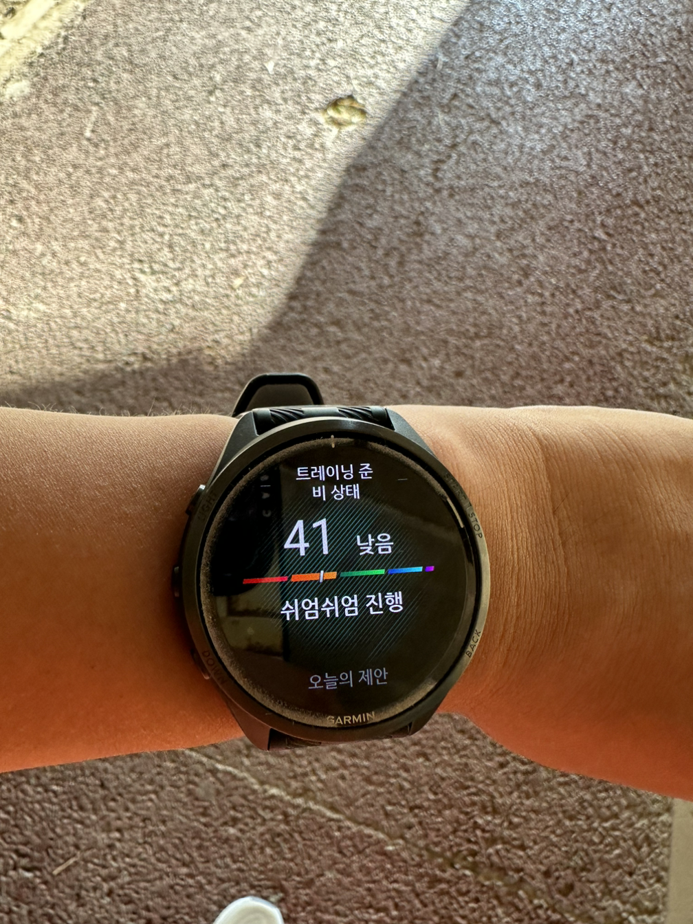 습관적으로 기상과 동시에 가민의 제안을 확인하고, 가민의 제안대로 한 적이 단 한 번도 없지만 수면을 통해 내 몸이 오늘의 달리기를 하기 위해 얼마나 회복되었는지를 확인한다. 침대에 누워 간단하게 스트레칭을 하고 달리기를 할 복장으로 갈아입고, 러닝 벨트 무선 헤드셋을 챙겨 밖으로 나왔다.
