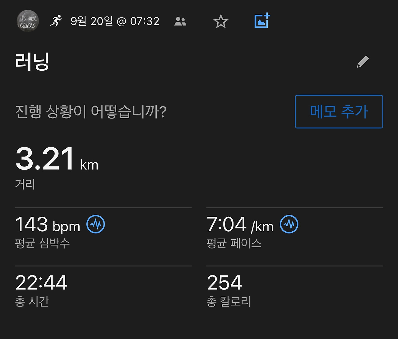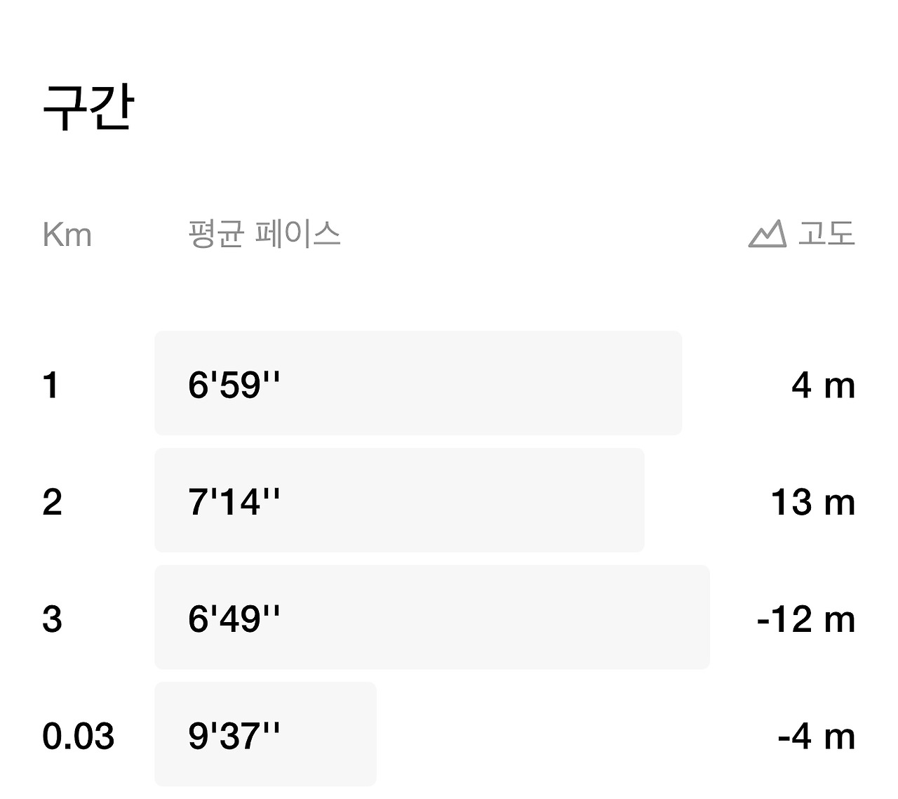 속도에 전혀 신경 쓰지 않았지만 평소 달리기를 할 때마다 초반 페이스가 좋았기에 자연스럽게 내가 생각했던 페이스보다 빠르게 달릴 수 있었다. 속도보다는 회복에 집중하기 위해서 천천히 달리려고 애썼지만, 내 몸은 어제의 달리기를 기억하고 있어서 자연스럽게 어제의 속도와 동일하게 달렸다.