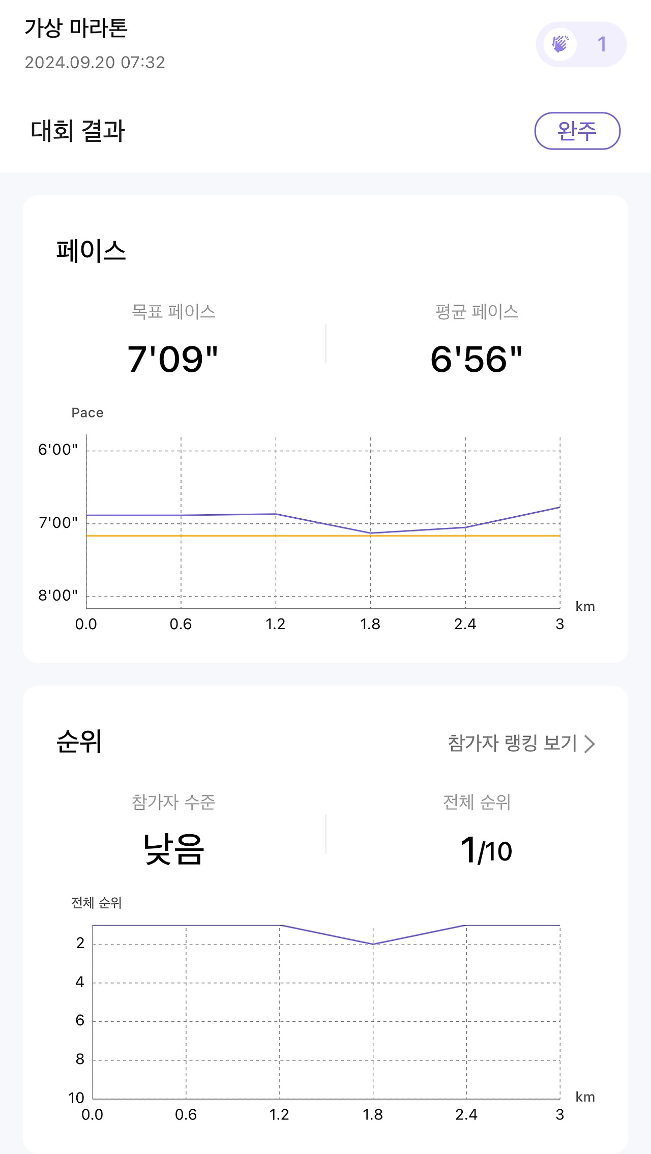 3km 가상 마라톤으로 매일의 달리기와 회복 달리기 두 마리 토끼를 잡을 수 있다는 확신이 들면서 9월 남은 기간 동안은 거리를 늘리지 않고, 격일로 10km 가상 마라톤과 3km 가상 마라톤을 번갈아 하면서 마라톤 대회 준비를 할 것이다. 특히 10km 가상 마라톤을 할 때는 피로 물질이 쌓이지 않도록 회복 걷기를 하면서 내일의 달리기를 준비할 것이다.