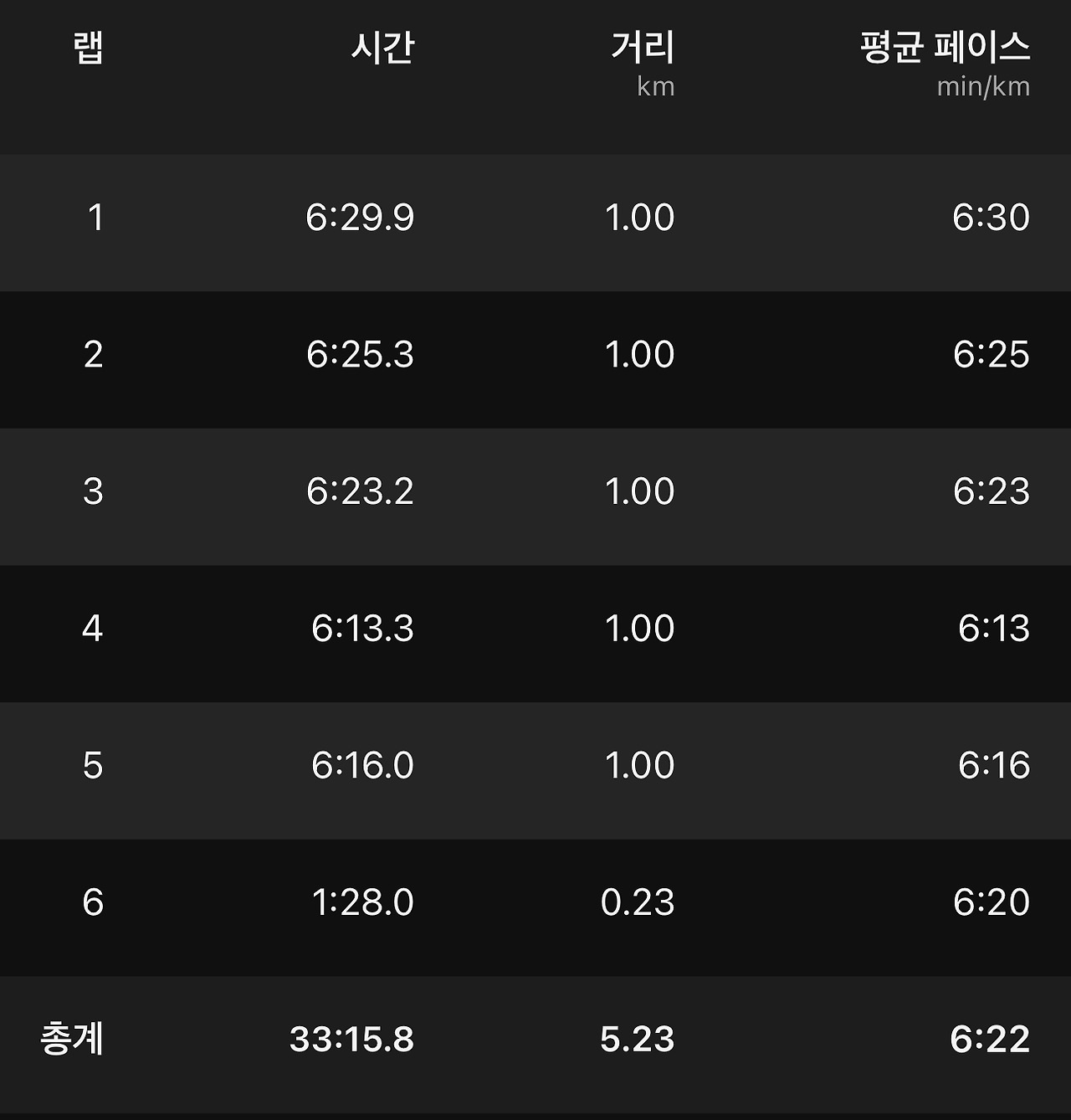 새벽 5시에 일어났지만 잠시 다른 생각을 하느라, 오늘 계획한 10km 가상 마라톤을 할 수 있는 한 시간 반이라는 시간적 여유가 없어서 어제와 같은 5km 회복 달리기를 하기 위해 급하게 계획을 변경했다. 월요일 출근길에 대한 걱정은 달리기에도 영향을 준다는 것을 다시 한번 더 느끼며 월요일은 평소보다 더 일찍 일어나 달려야 할 것이다.