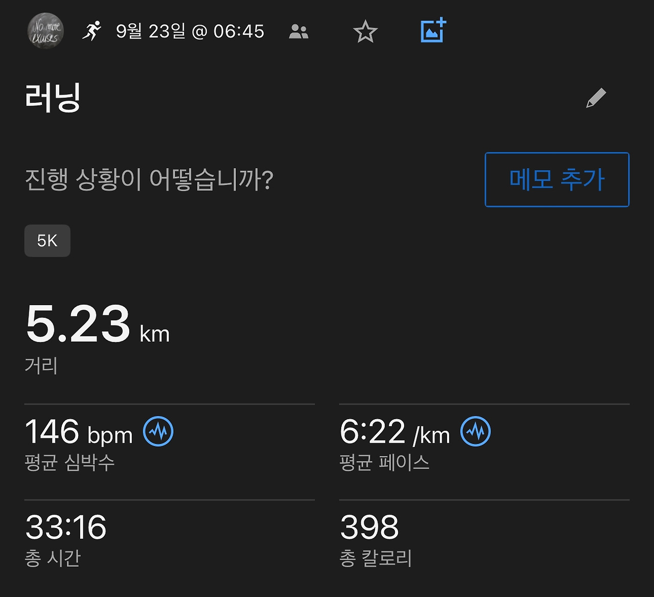 말로는 순위를 신경 쓰지 않는다고 하지만 자꾸 내 눈은 페이스를 유지했느냐보다는 순위에 먼저 눈이 가는 것을 보면 나도 자랑하고 싶은 속물이라는 것을 느낀다. 하지만 이내 곧 페이스를 확인하고 점점 체력이 만들어지고 있음을 감사하게 느낀다. 오늘의 노력이 이런 기록을 만들었다는 사실에 감사하며, 몸을 잘 회복하여 내일의 달리기에도 최선을 다할 수 있는 순간을 만들도록 집중하고 또 집중할 것이다.