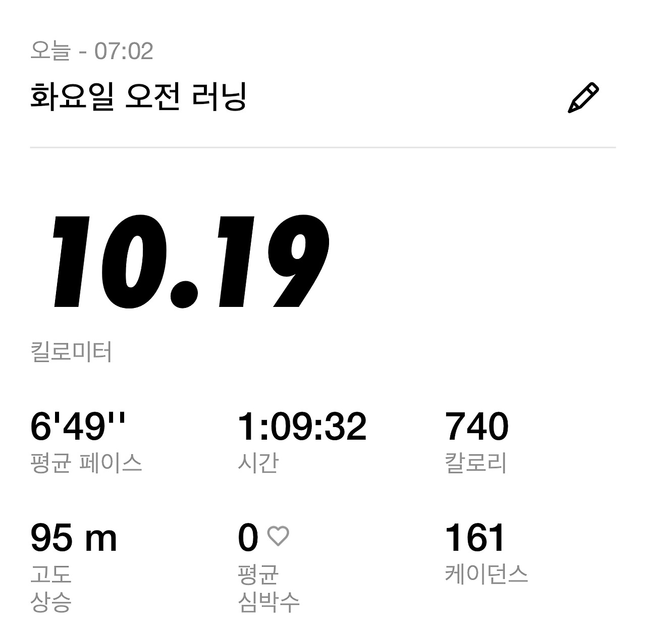 오늘 걱정하며 시작한 10km 가상 마라톤은 지금까지 했던 연습 중 가장 빠른 페이스로 마무리했고, 순위도 1등을 했을 정도로 결과가 좋았다. 심지어 심박수도 높지 않아 체력적으로 부담이 없었다는 것을 알 수 있어, 다음 연습 때는 조금 더 페이스 관리를 하며 연습할 것을 다짐했다. 속도보다는 페이스 유지에 집중하며 연습하면 자연스럽게 속도는 해결될 것이라 믿는다.