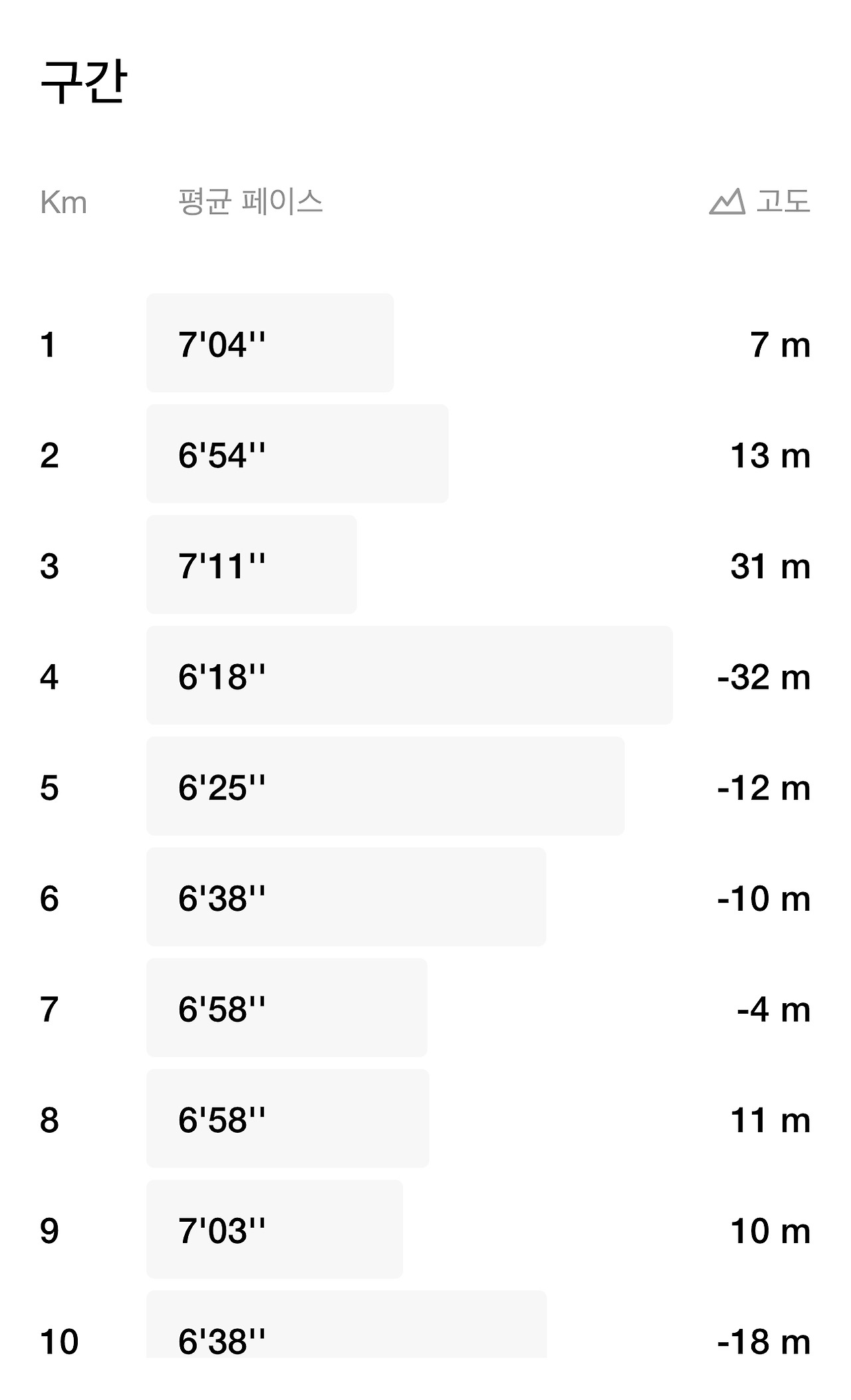 이제 5~6km 구단에서 급격한 페이스 저하는 줄어들었지만 7~8km 구간대에서도 페이스 저하가 있어 걱정했던 것과는 달리, 후반부로 갈수록 조금씩 페이스가 떨어지기는 했지만 5~6km 구간대에서도 페이스 저하가 없었고, 7~8km 구간대에서도 조금 힘들었기는 했지만 페이스가 급격하게 저하되지는 않았다.