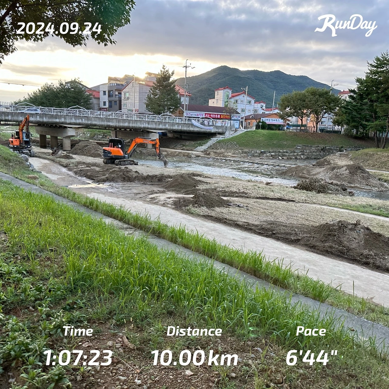 아직 호우 피해 복구 중인 곳이 있어 오늘의 10km 가상 마라톤 코스를 머릿속으로 떠올리며 달리기 시작했고, 어제 페이스를 조금 올려 달렸던 기분으로 페이스 유지에 집중했다. 지금은 가상 마라톤으로 연습해서 큰 문제가 되지 않지만 페이스를 빠르게만 하다 보면 실제 대회에서는 수많은 러너 속에서 그들의 페이스를 부러워하며 따라 할지도 모른다.
