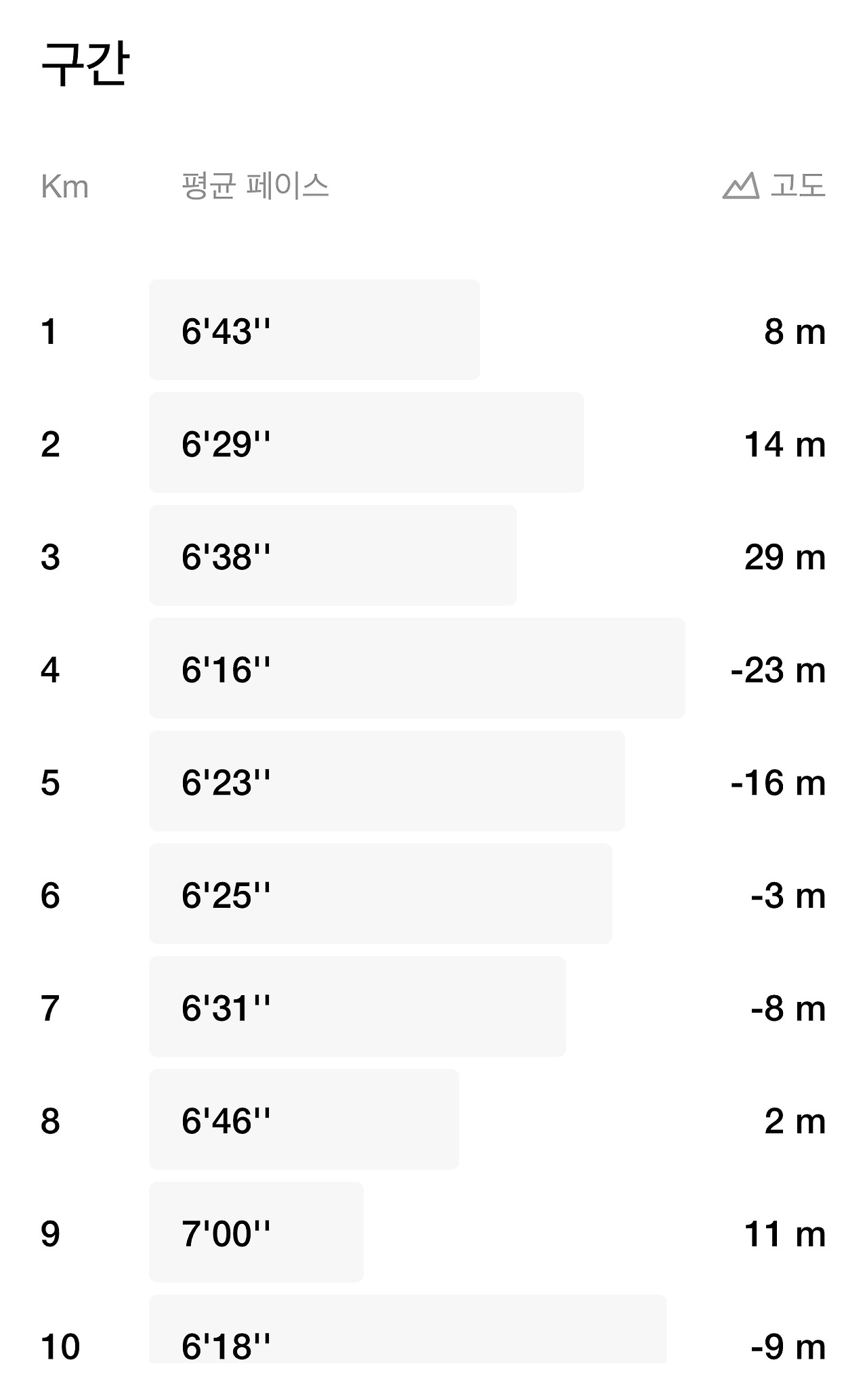 가상 마라톤 10km 연습을 하는 날이라 더 신경 써서 웜업을 하며 고관절 스트레칭에 집중하였고, 허벅지와 종아리 근육을 마사지하면서 달리는 중에 근육이 뭉치는 일이 없도록 했다. 이런 과정이 번거롭게 보일 수도 있지만, 웜업을 얼마나 세밀하게 하느냐에 따라 페이스 유지하는 데 어려움이 없고 페이스가 빨라짐을 느껴서 더 많은 시간을 할애하는 중이라, 마라톤 대회 당일에는 웜업만 한 시간 정도 해야 하지 않을까 생각한다.