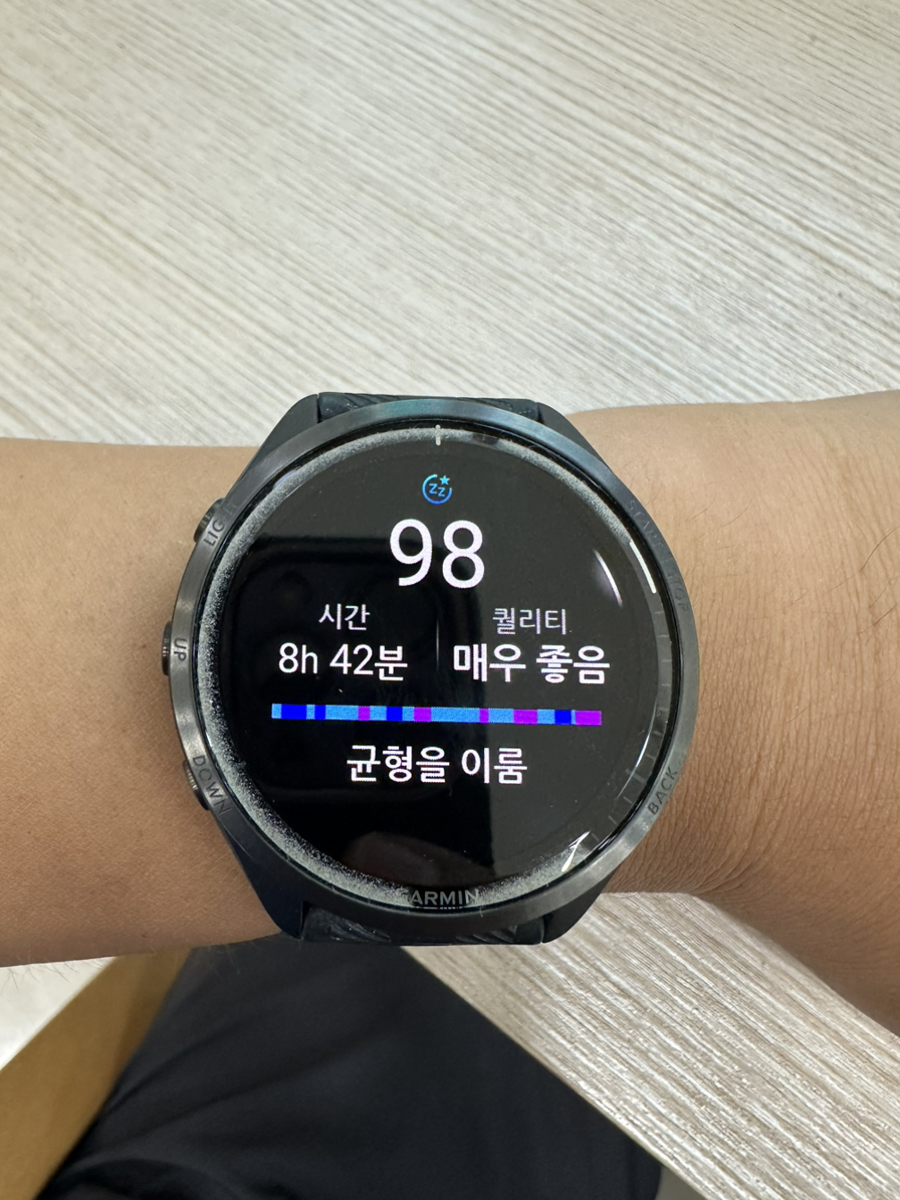 잠을 자는 시간도 중요하지만 얼마나 잘 자느냐도 중요한 데 수면의 질이 수면의 양을 압도한다. 잠을 자는 순간에는 내가 어떻게 자는지 알 수 없기에, 잘 때도 가민 포러너 965를 착용하고 내 수면을 확인한다. 수면 시간도 중요하지만 잠을 자면서 얼마나 회복하는지 수치로 보고 싶기 때문에 불편하더라고 시계를 착용하고 자는 습관을 만들고 있다. 그래서 자기 전에 스마트폰을 보는 습관을 버리고, 눕자마자 자는 축복을 지속적으로 누리려고 한다.