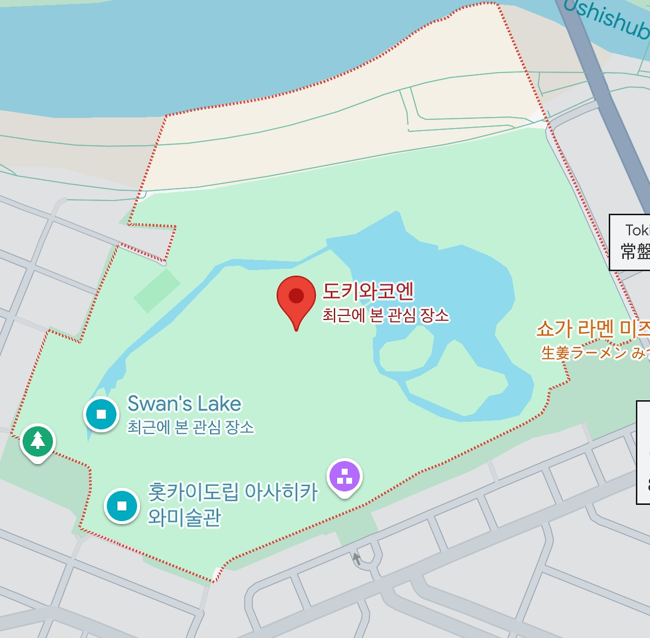이곳에는 '지도리가이케'라는 연못이 있는데 연못과 연결된 물줄기를 조감도의 시선으로 바라보면 백조같이 보인다고 해서 'SWAN LAKE'라는 별명도 가지고 있다. 구글맵에서 숙소 근처를 검색하다 달리기 장소로 선정한 이유도 swan lake를 달리고 싶었기 때문이다. 의도하지 않았든 의도한 것이든 백조의 형상을 하고 있는 연못이 공원 안에 있다는 사실만으로 나의 호기심을 자극하기 충분했고, 아사히카와에서 편하게 달릴 수 있었다.
