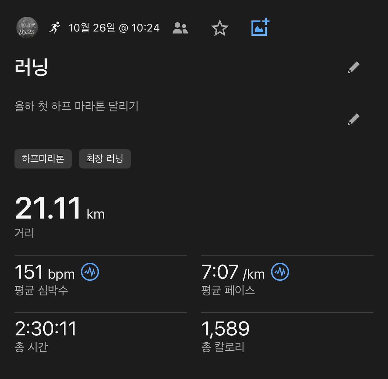 달리기를 시작한 후 언제 해 볼 수 있을까 상상만 했던 하프 마라톤을 처음 경험하면서 기쁨보다는 더 많은 연습이 필요함을 느꼈다. 무리하면 완주는 할 수 있겠지만 득보다는 실이 많은 것이라는 것을 느껴 다시 15km 달리기 연습으로 돌아가 착실하게 달릴 것이다. 그리고 내년에는 하프 마라톤 대회에 참가할 수 있도록 준비하며 초보 러너에서 한 걸음 더 성장하고 싶다.