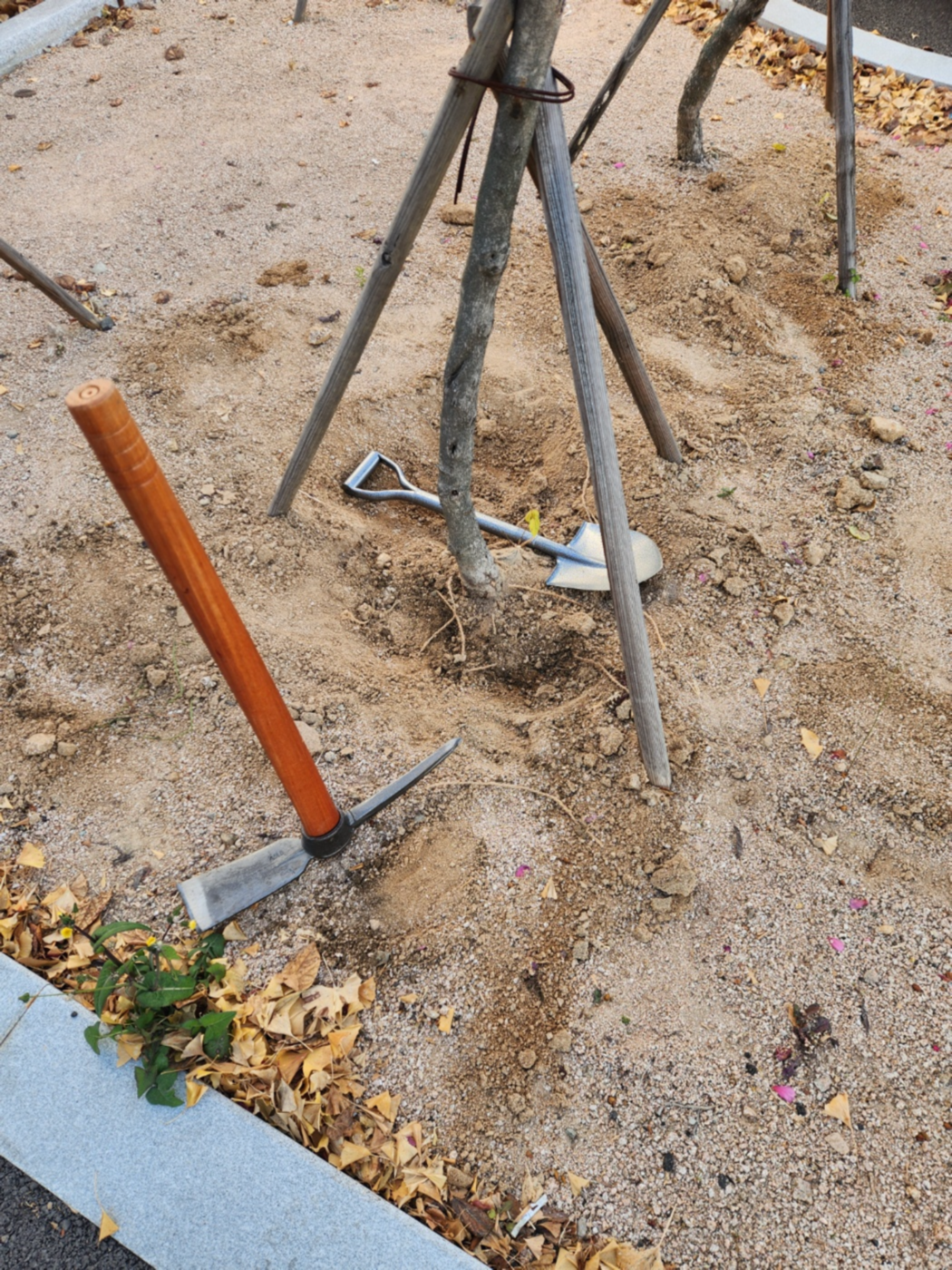 삽만 준비했더라면 한참 결렸겠지만 곡괭이 덕분에 30분도 안 되어 나무를 옮겨 심고 휴식을 취할 수 있었다. 곡괭이 사용법을 배울 때 쓸 일도 없는 것을 무엇 때문에 배우냐는 핀잔을 받기도 했지만, 군복무 중에만 사용하더라도 스스로 곡괭이 사용을 하고 싶다는 생각에 배웠던 곡괭이 사용법을 전역한 지 18년이 지난 지금 기억하고 있다는 사실에 놀랬고, 예상했던 것보다 작업을 일찍 끝낼 수 있어 여유로운 오전을 보낼 수 있었다.