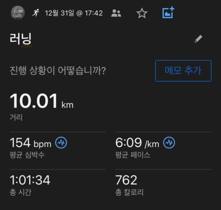 다시 오지 못할 2024년, 특히 마지막 날, 젖 먹던 힘까지 짜서 기록을 세워보자는 다짐이 힘들었지만 매 구간별 페이스를 점검하며 달리는 행위 자체에만 집중할 수 있게 했다. 조금 어제 LSD를 해서 아직 회복이 되지 않았기에 조금 힘들었지만 올해를 보내는 이 시간을 누리기로 했다.