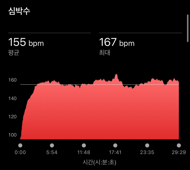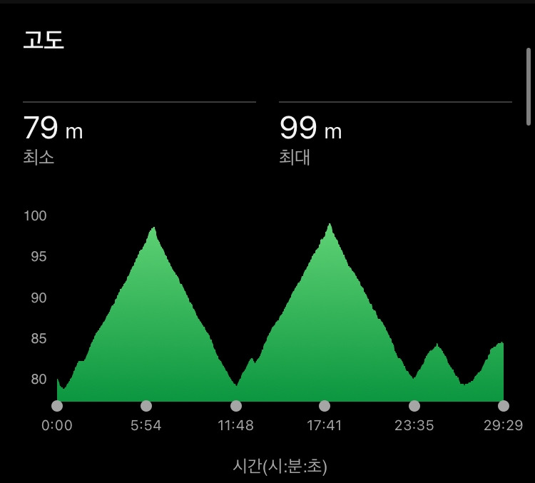 오르막길을 제외하면 10월 홋카이도 여행 때 공원 투어를 갔던 생각이 날 정도로 달리기 좋았고, 연이틀 달리기를 해 회복 안 된 상태의 몸이라서 조금만 달리기로 했다. 매월 첫날은 런데이 애플리케이션의 챌린지 중 하나인 1km 달리기를 잊지 않고 하는데 조금 더 몸을 풀 겸 챌린지를 하고 본격적으로 달렸다.