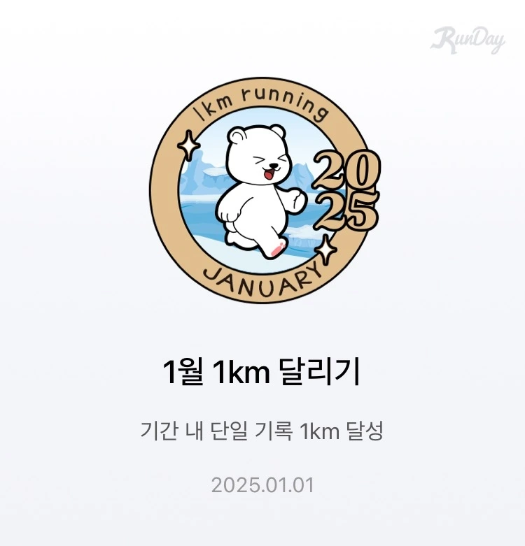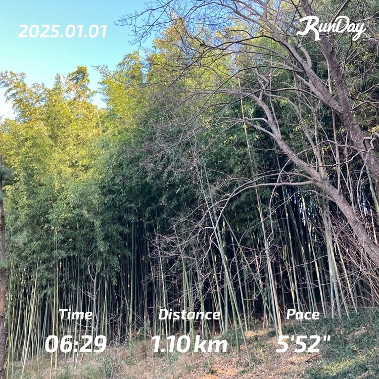 몸의 회복 상태만 보아서는 이날 휴식을 취해야겠지만 대구마라톤 준비도 할 겸 백지달(백 개의 지역 달리기를 하나 더 채우며 달리기 세계를 더욱 풍요롭게 만드는 것으로 대체하고 싶었다. 특히 새해 첫날이라 의미 있는 시작을 하고 싶었기에 2025년의 달리기 첫 단추, 1.1km 달리기를 기록하며 올해의 여정을 시작했다.