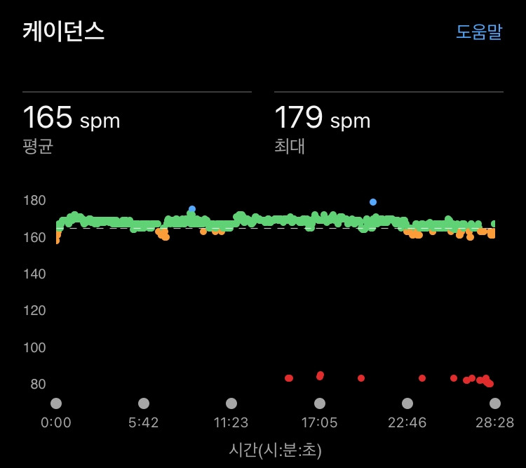 약간의 코감기 증세가 있어 코로 호흡하기 쉽지 않았지만, 걱정했던 것보다 심하지 않아 호흡하기 불편하지 않았고 심박수도 높지 않았다. 틈틈히 가민을 확인하며 페이스와 심박수를 점검했고 달리기 전 먹은 GU 에너지젤 덕분인지 체력적인 부담도 덜 했다.