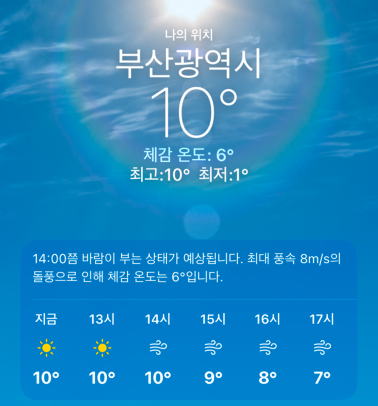 부산 특유의 바닷바람이 쌀쌀하기는 했지만 새벽 달리기를 하지 못할 정도의 추위는 아니었기에 청량감을 느끼며 달릴 수 있는 정도였다. 마음 같아서는 1시간 달리기를 하고 싶었지만 청바지까지 땀에 젖으면 갈아입을 옷이 없어서 20분만 달리고 마무리했다.
