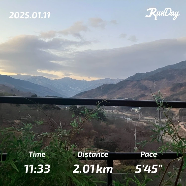 스마트폰으로 기온을 확인하니 영하 6도의 날씨라 조금 걱정되기는 했지만 바람이 불지 않아 생각한 것처럼 체감온도는 낮지 않았다. 가볍게 20분 정도만 달릴 요량으로 숙소 주변 도로를 달렸고 오르막길이 있었지만 크게 힘들게 느껴지지는 않았다. 첫겨울 아침 달리기를 했다는 기쁨으로 더 달리고 싶었지만 여행 일정이 있어 서둘러 마무리했다.