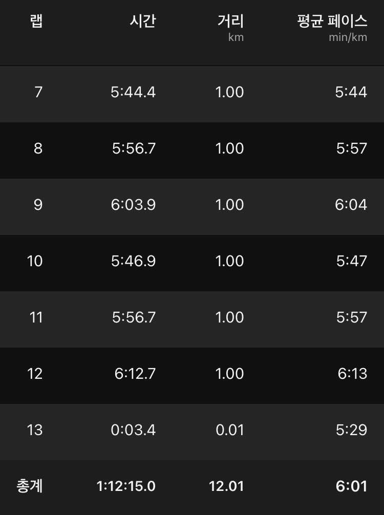 하지만 이런 바람의 영향에도 빨리 적응하는 러너가 되어야겠다는 생각에 바람이 부는 방향으로 달릴 때는 더 힘을 주어 달렸고, 바람을 등지고 달릴 때는 힘을 아껴서 바람 때문에 늦어진 페이스를 회복할 수 있었다. 러닝 모자가 바람에 날아갈 정도로 바람이 강하게 불어 모자를 벗어 손에 잡고 달리느라 집중력이 떨어지기도 했지만 끝까지 최선을 다해 달렸다.