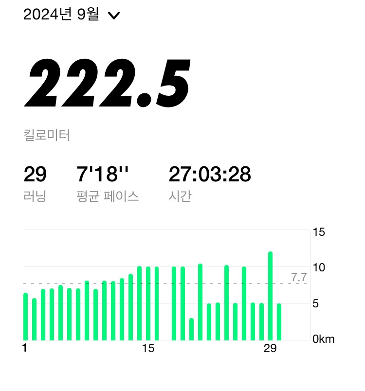 30일 중 단 하루만 빼고 29일을 달렸기에 가능한 기록이지만 휴식보다는 그저 매일 달리고 싶었을 뿐이었다. 휴식이 나쁘다는 것은 아니지만 누군가는 아주 그럴듯한 명분을 찾아 오늘의 달리기를 휴식으로 대체하는 경우도 있고, 나도 때로는 가민이 휴식을 제안해 주기만을 기다린 적도 있었다. 하지만 나처럼 천성이 게으른 사람에게는 이런 가혹한 훈련의 시간이 때론 필요할지도 모른다.