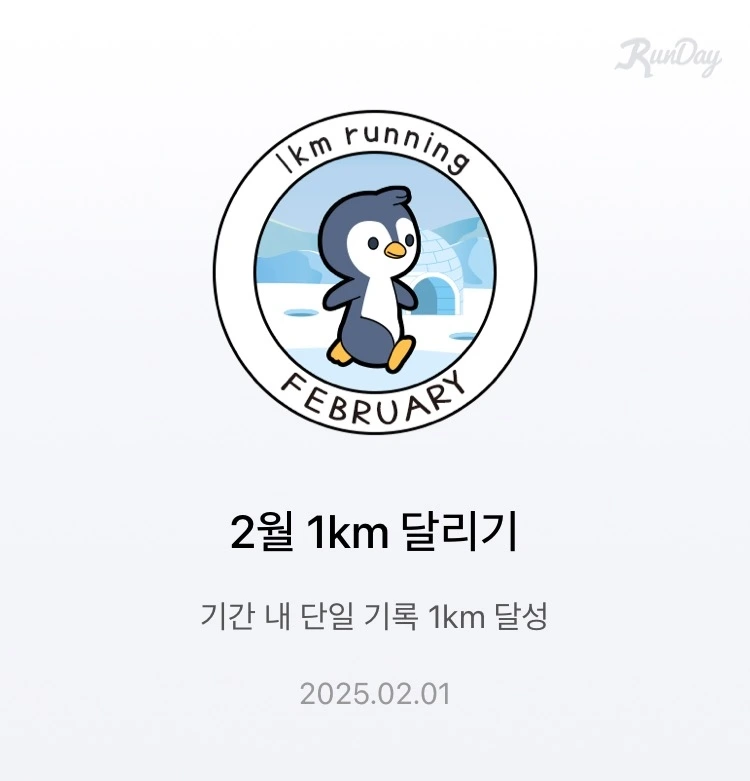무엇인가를 기념하기 위한 가장 좋은 방법 중 하나가 몸으로 기억하는 것이기에 날짜 달리기는 잊지 않고 기억하게 만든다. 그래서 매월 첫날, 날짜 달리기를 하며 이 달을 의미 있고 가치 있게 만들고 싶은 욕망을 표출한다. 무엇을 해야 할지, 얼마나 해야 할지 다시금 몸이 기억할 수 있게 자극을 주며 이 달의 목표를 상기한다. 주 3회 달리기는 물론 2월 미션런데이와 동장군 취임식 3,4주 차 챌린지를 하면서 따뜻한 봄을 기다린다.