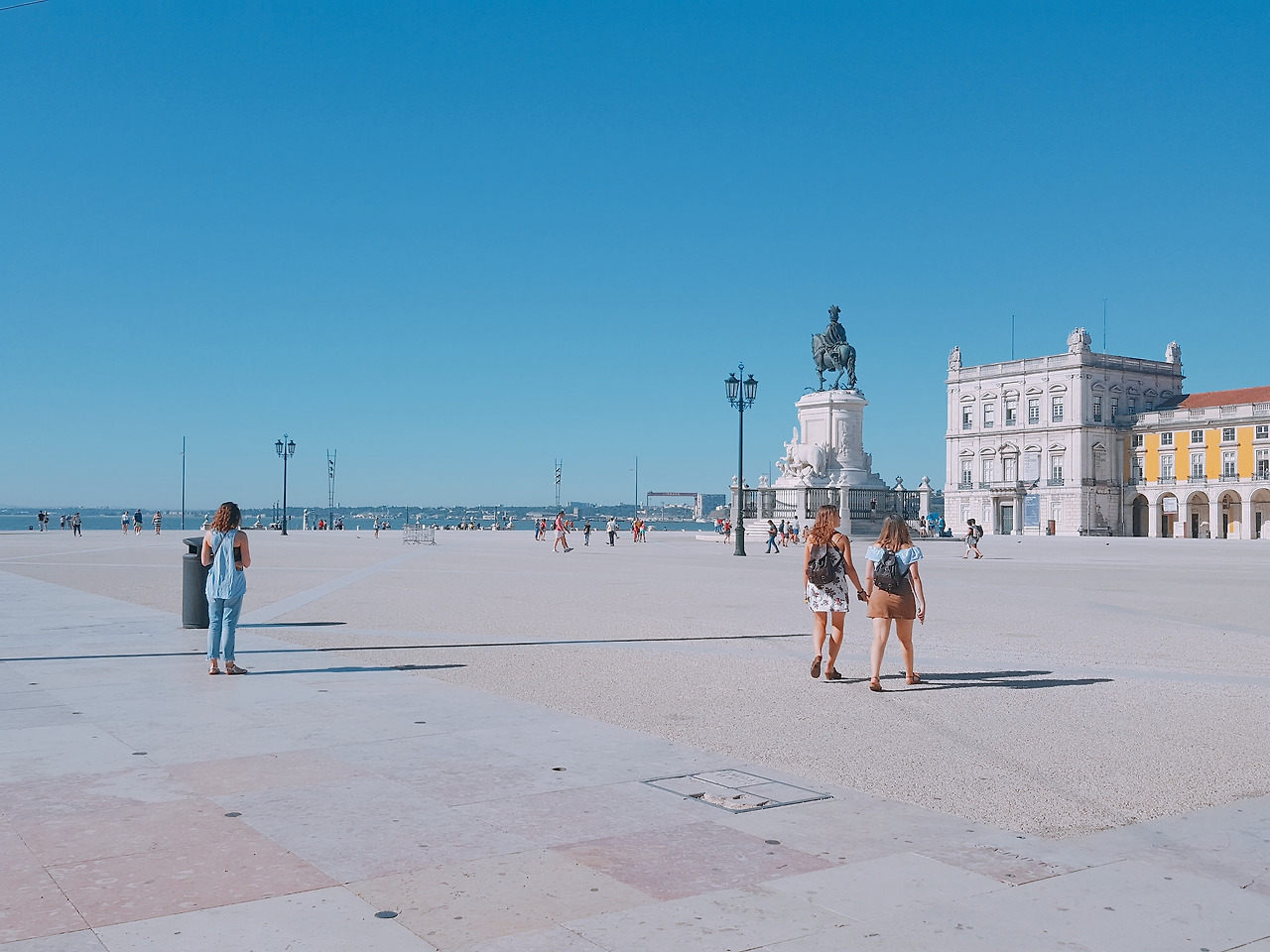 그 무게감에 걸음이 느려질 때 쯤 코메르시우 광장에 도착했다. 바다로 착각할 만큼 드넓은 테주강과 맞닿아있는 광장은 리스본에서 가장 넓고 붐비는 곳이지만, 아직 한낮이 되지 않은 오전 시간이라서일까, 관광객 몇 명만 사진을 찍고 있는 드물게 한적한 풍경이다. 잔잔한 강변을 걸으며 눈에 띄는 스트라이프 천막의 카페로 들어섰다. 반갑게 인사를 건네는 주인 아저씨에게 올라 Ola- 익숙치 않은 말을 자그맣게 내뱉고 싱그러운 과일들을 구경했다.