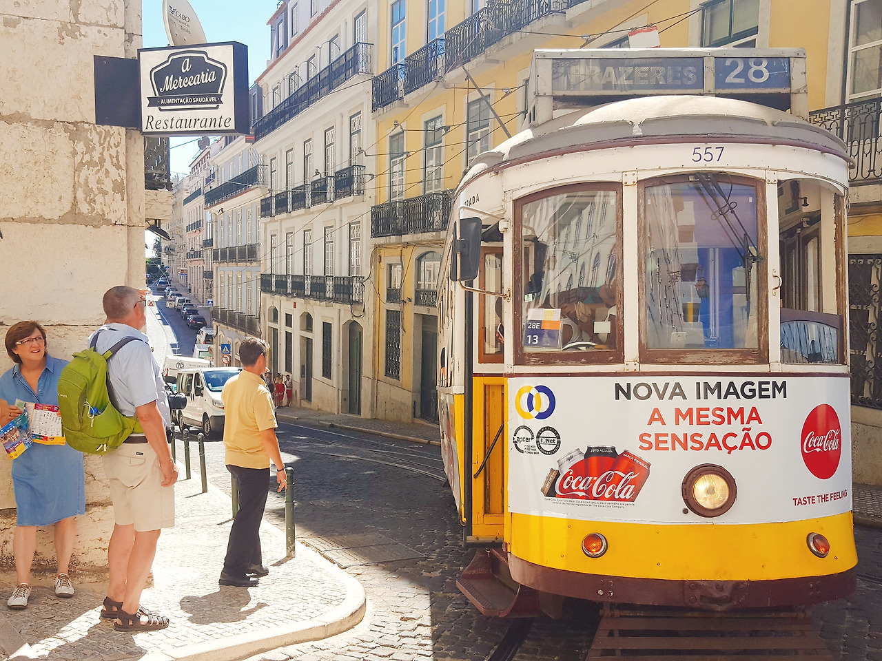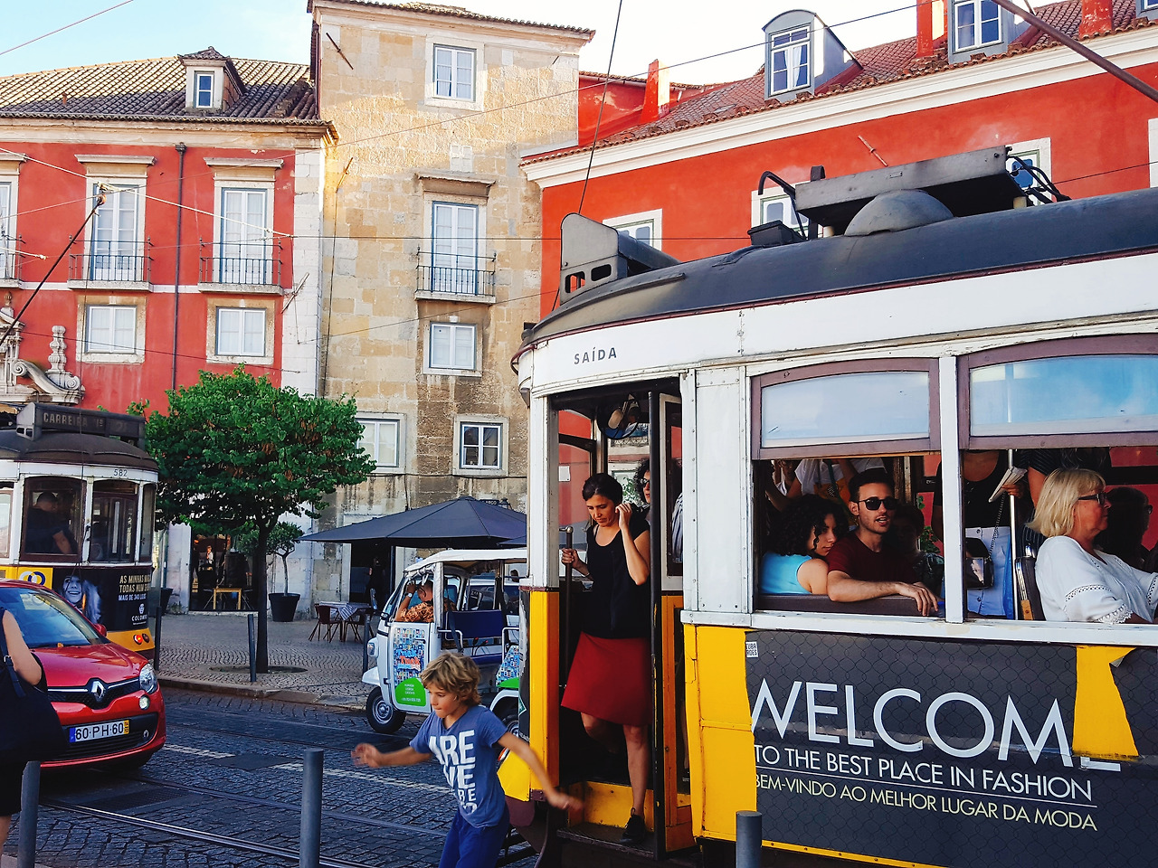 리스본의 도로에서 신호등이 큰 의미가 있을까. 구불구불한 골목을 트램과 툭툭, 자동차와 사람, 강아지가 모두 한 번에 다닌다. 그래서 달리던 트램이 멈추는 일도 다반사다. 마음씨 좋은 운전 기사를 만나면 마주오는 트램을 먼저 보내기 위해 여러번 정차하기도 하고-반대라면 물론 씽씽 달려갈 수 있다- 좁은 골목의 맞은 편에서 달려오는 자동차로 멈춰서기도 하고, 때로는 옆에서 걷는 사람을 배려하며 느릿하게 움직이기도 한다.