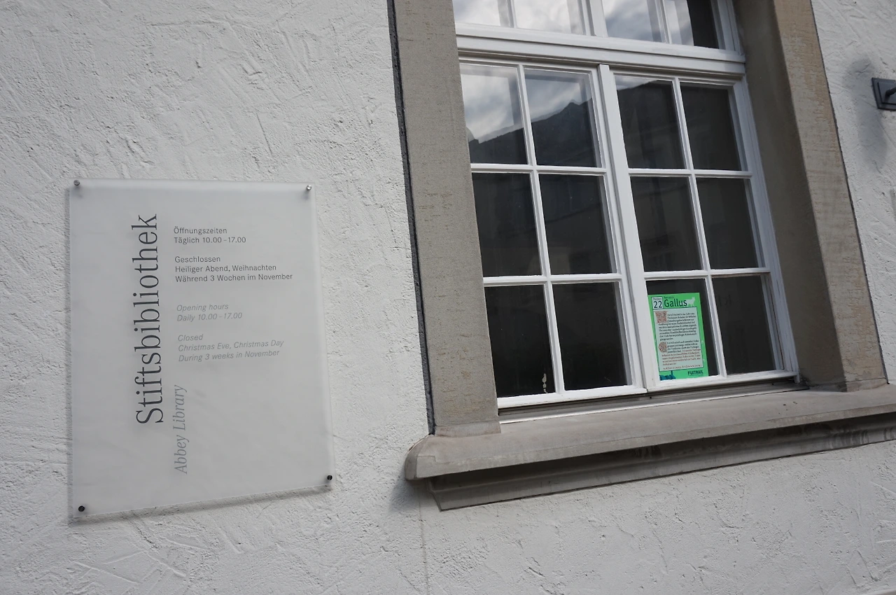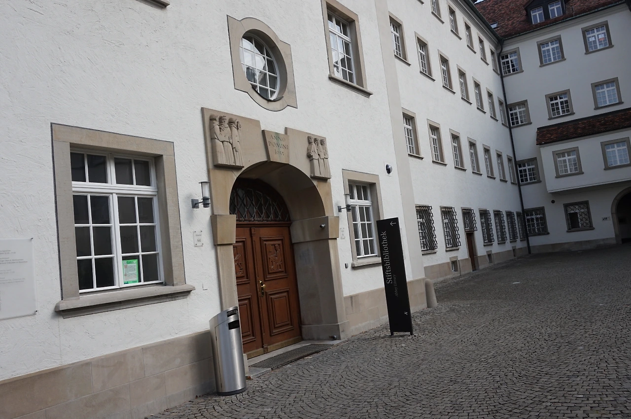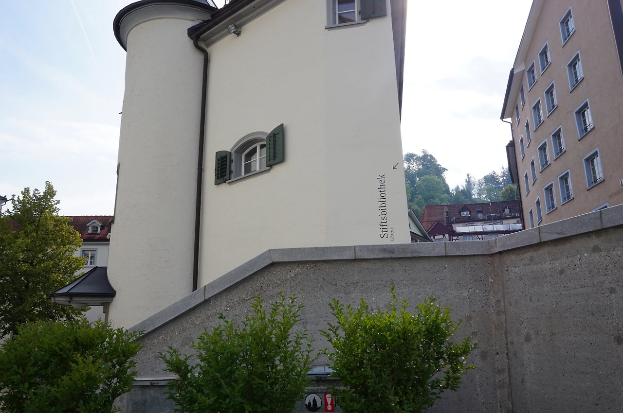 생 갈 수도원 부속 도서관으로 들어가는 문은 성당 뒷마당에 있다.