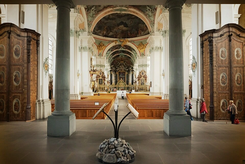 카롤링거 왕조 시대의 위대한 수도원의 완벽한 모범을 보여 주는 이 곳은 8세기부터 1805년에 세속화될 때까지 유럽에서 가장 중요한 곳 중의 하나였다. 그리고 이 곳에는 세계에서 가장 오래되고 풍부한 장서를 갖춘 도서관이 있다.