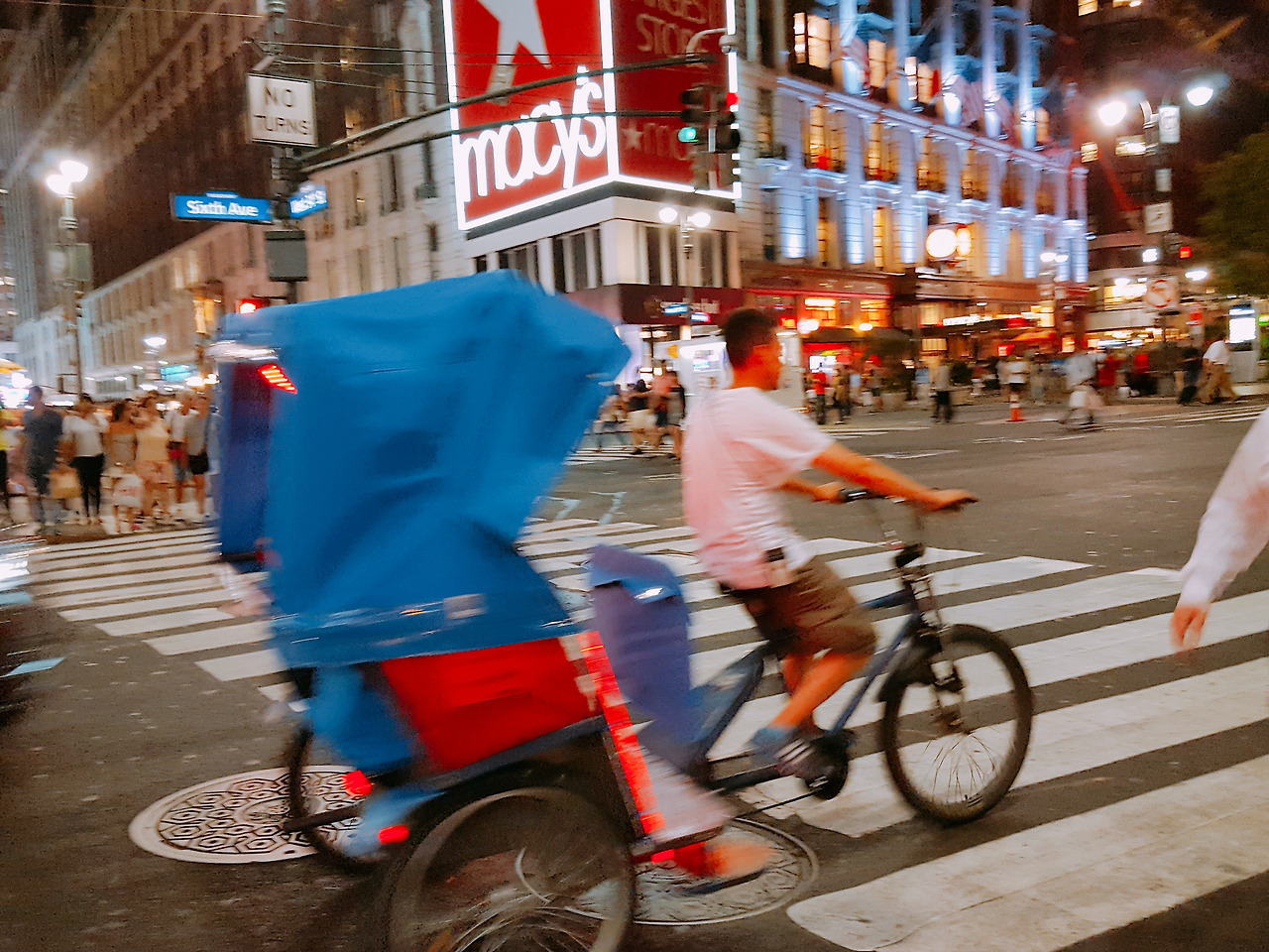 숙소 매니저를 만나기로 한 장소는 34번 스트리트이다. 엠파이어스테이트 빌딩 옆, 밤이 되면 더 화려하고 유동인구도 많은 장소. 걱정 말고 가셔도 된다는 내 말을 듣고 있는 건지 그는 차를 길가에 세우고 몇 번이나 당부를 한다. 미국도 처음이고 아는 사람도 없어서 낯설긴 하지만, 그를 계속 세워둘 수는 없기에 더 오버스러운 몸짓으로 "괜찮아요!"를 반복하기를 10여분, 기어이 숙소 매니저가 오는걸 보고서야 떠나는 그. 번쩍번쩍한 번화가인데, 무엇이 그리 염려가 되는 것일까. 게다가 나는 그의 말마따나 '혼자 온 겁도 없는' 처녀인데.