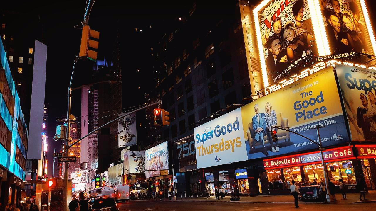타임스퀘어 : 뉴욕의 42번가, 7번가, 브로드웨이가 만나는 삼각지대를 ‘타임스 스퀘어’라 부른다. 예전 <뉴욕 타임스>의 사옥이었던 원 타임스 스퀘어(One Times Square) 빌딩이 자리해 있기 때문이다. 이 삼각지대에는 수많은 영화관, 공연장, 호텔, 레스토랑 등이 모여 있다.