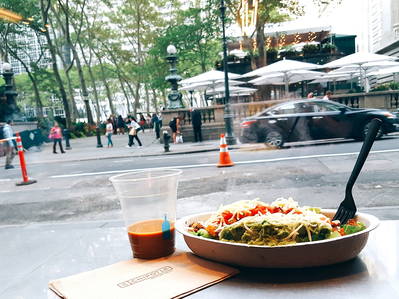 빽빽한 빌딩 가운데 싱그러운 공원에서 이렇게 아이스 카페라떼를 들고 있으면 무엇이 더 필요할까.