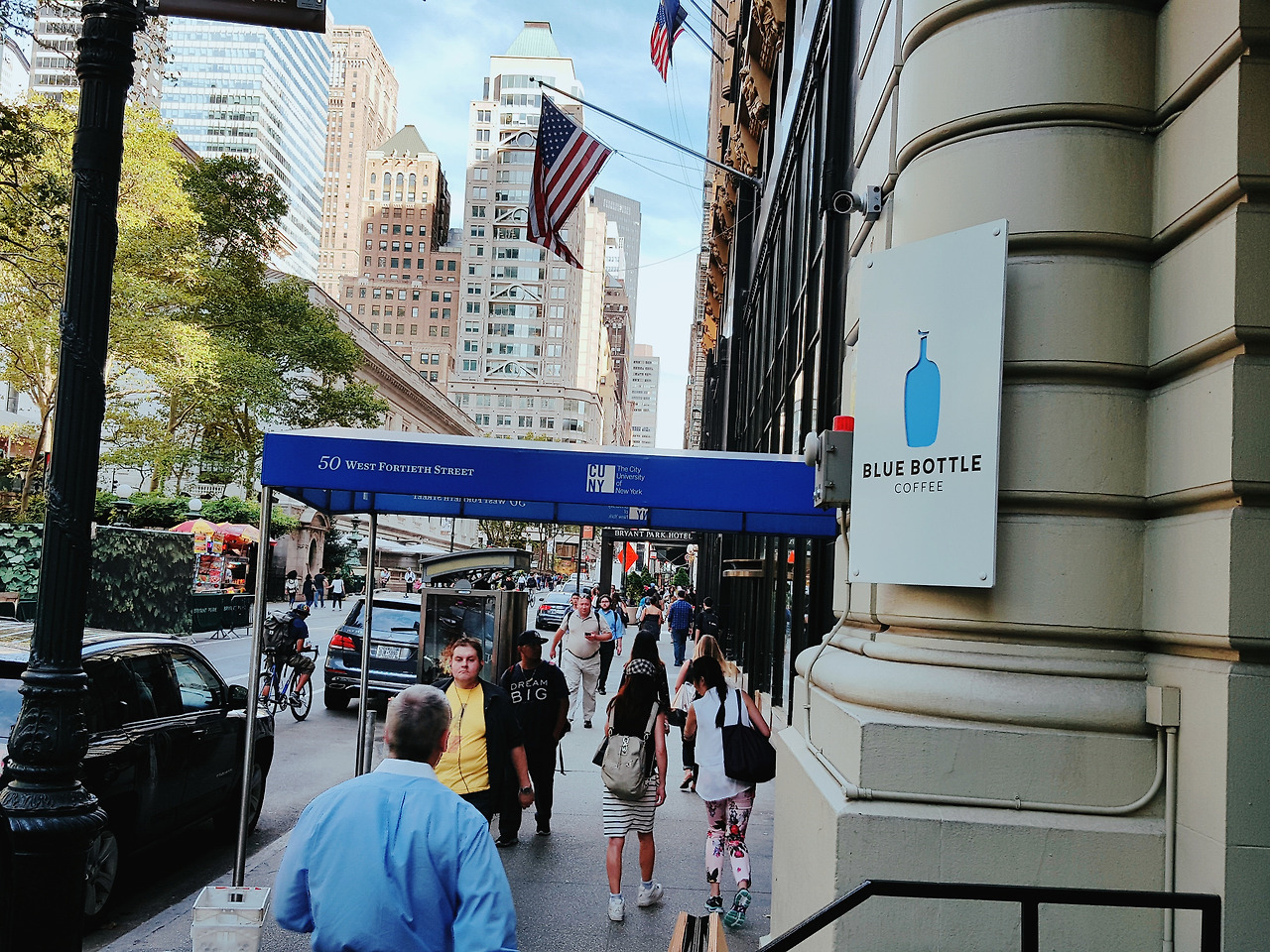 브라이언트 파크 앞에 있는 블루보틀커피 : 54 W 40th St, New York, NY 10018