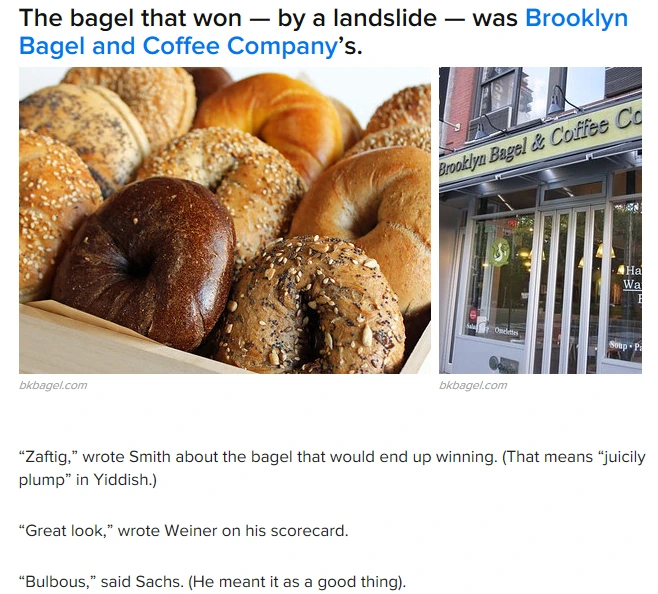 뉴욕 베이글을 검색하면 나오는 카페 중 가장 가보고 싶었던 곳이다. 브루클린 베이글 앤 커피 컴퍼니는 A Taste Test Of NYC’s Best Bagels 에서 1위로 선정이 되기도 했다고 한다. 다른 유명한 베이글 가게로는 에싸베이글과 머레이스베이글이 나오는데, 후기들을 읽어보고 유명한 메뉴를 미리 알아가는 것도 좋겠다.