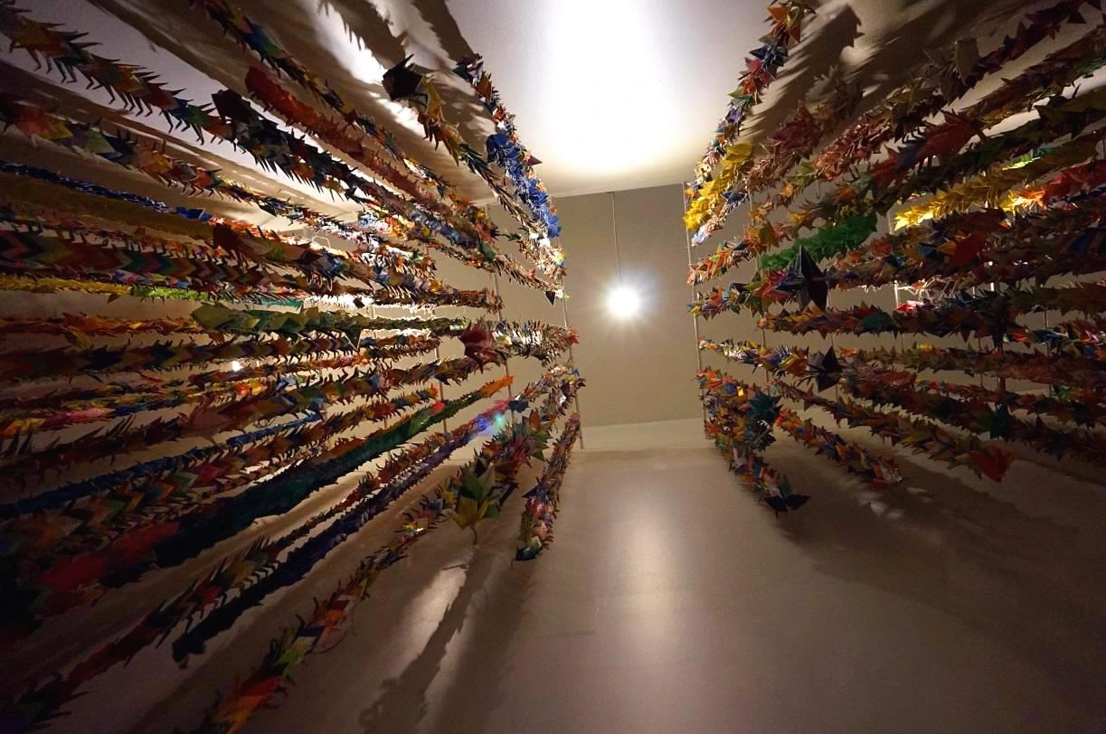 그들의 모습을 바라보고, 걷고, 멈추다가 그제야 곳곳에 놓인 티슈가 보였다. 천천히 지하 1층을 가기 위해 계단을 내려가는데, 뭔가 멈칫했다. 보통은 그러지 않지만 뒤를 돌아봤다. '뭐가 있었나.' 아무것도 없어서, 다시 몸을 돌리다가 나도 모르게 천장을 올려다보았다. 천장으로 이어지는 수많은 종이학.