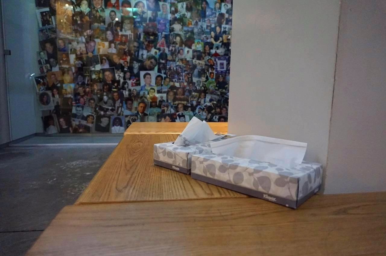 공간 틈틈이 놓여있는 티슈와 천장에 가득한 종이학. 그래, 이곳은 911 메모리얼이다.