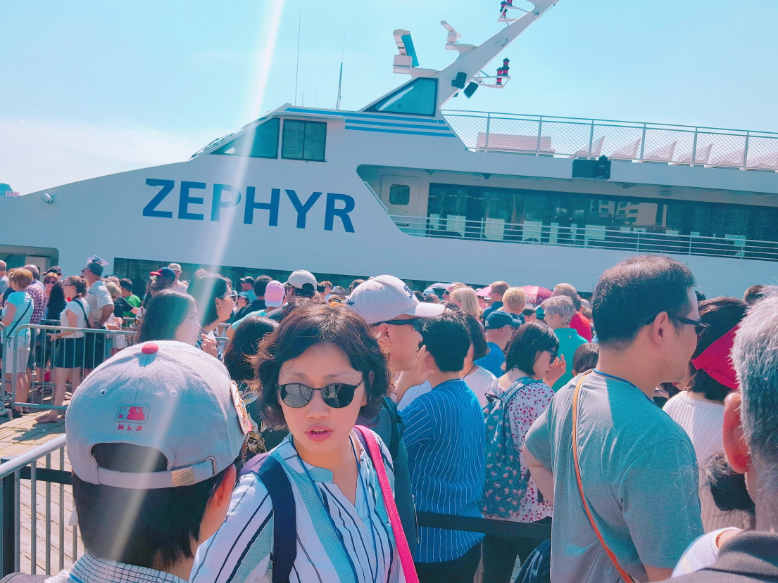 티켓 교환소에 도착해 *뉴욕 패스를 보여주고, 자유의 여신상 유람선 선착장까지 약 100미터. 2분만 걸어가면 되는 거리였지만, 그날따라 체력은 바닥이 났고 햇볕에 온 몸이 녹아내리고 타들어가는 것 같았다. 심호흡을 하고 간신히 걸어가 관광객들이 늘어선 기다란 줄에 동참했다.